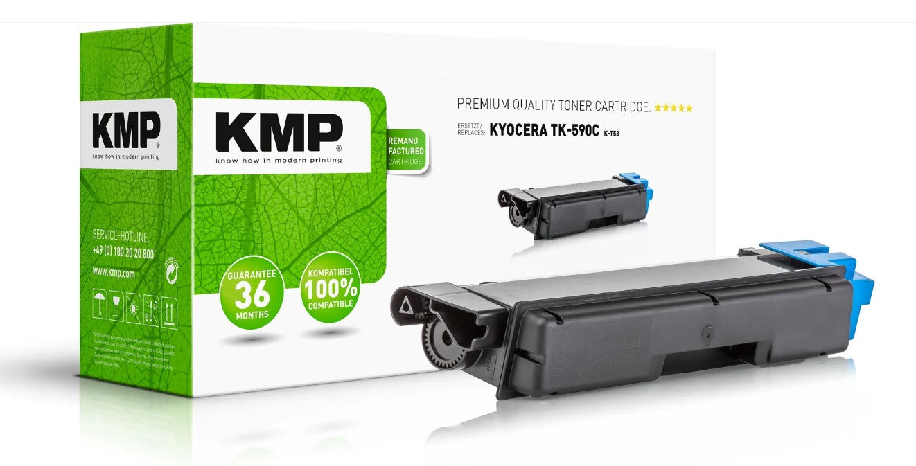 KMP K-T53 Toner cyan kompatibel mit Kyocera TK-590 C Der KMP Toner ist die preiswerte Alternative zur Kyocera Tonerkartusche TK-590C...