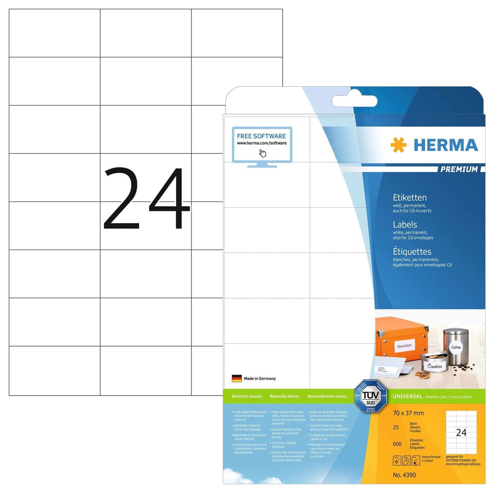 2x600 HERMA 4390 Adressetiketten Etiketten, weiß 70,0 x 37,0 mm(1200 stück)