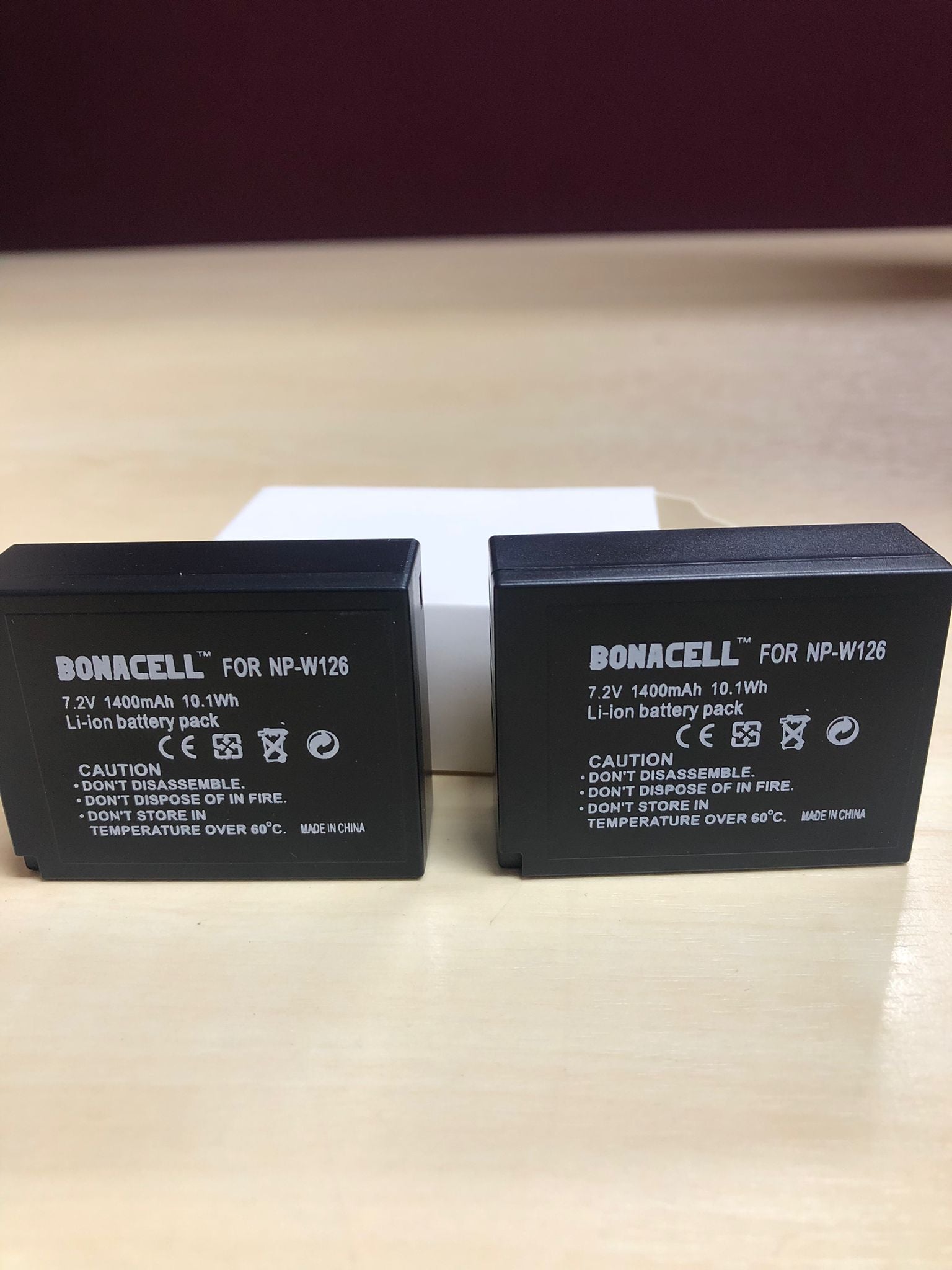 2X Bonacell Akku für Fujifilm NP-W126 Kamera Ersatzakku 1400 mAh kompatibel mit Fujifilm X-T10, X-T20, X100F, FinePix HS30EXR, HS33EXR, HS35EXR, HS50EXR, X-A1, X-A2, X-A3, E2, X-E3