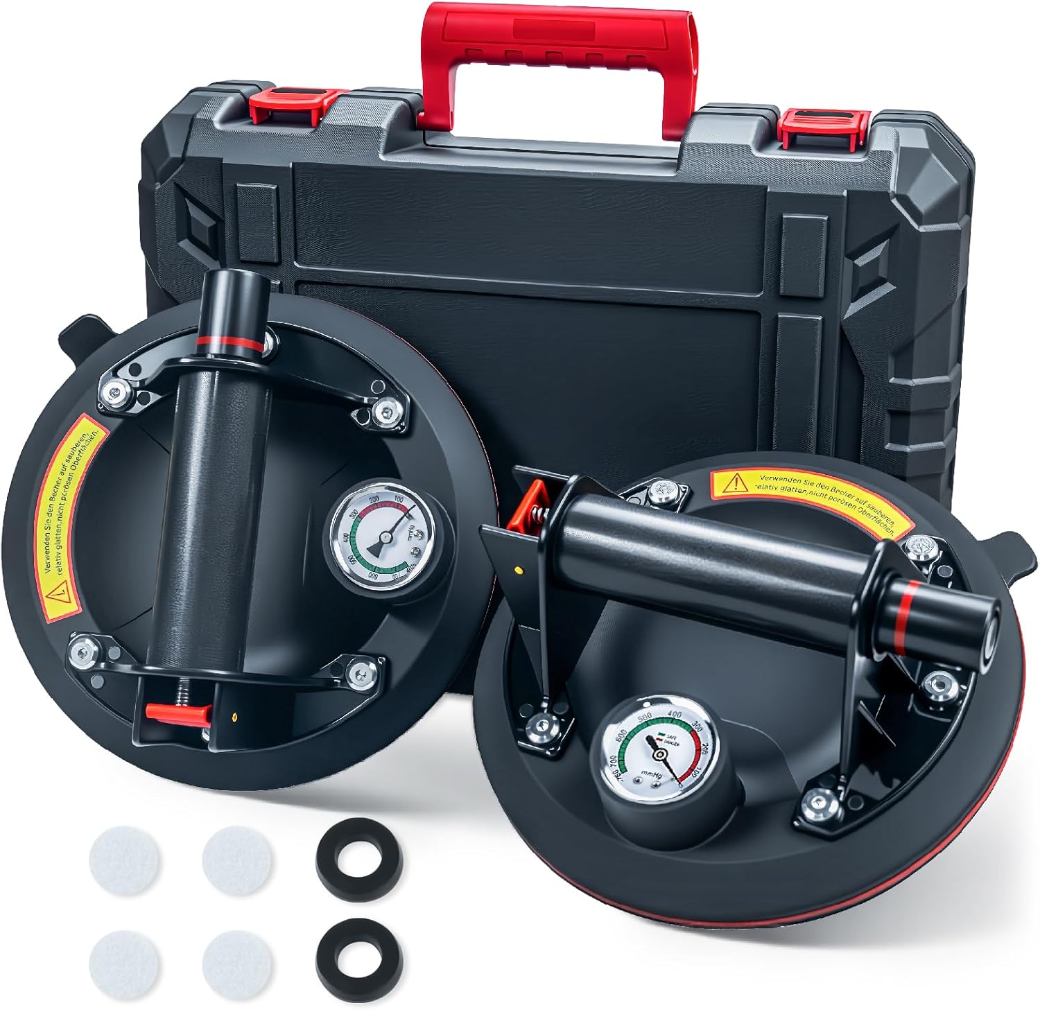2er-Set Saugheber Glassauger mit Manometer|Tragkraft Max.220KG,Vakuum Saugheber Fliesen Glasheber mit Tragbarer Werkzeugkasten,Saugheber für Glas,Fliesen,Marmor 【Manometer - Sicher & Effizient】: Dieser...