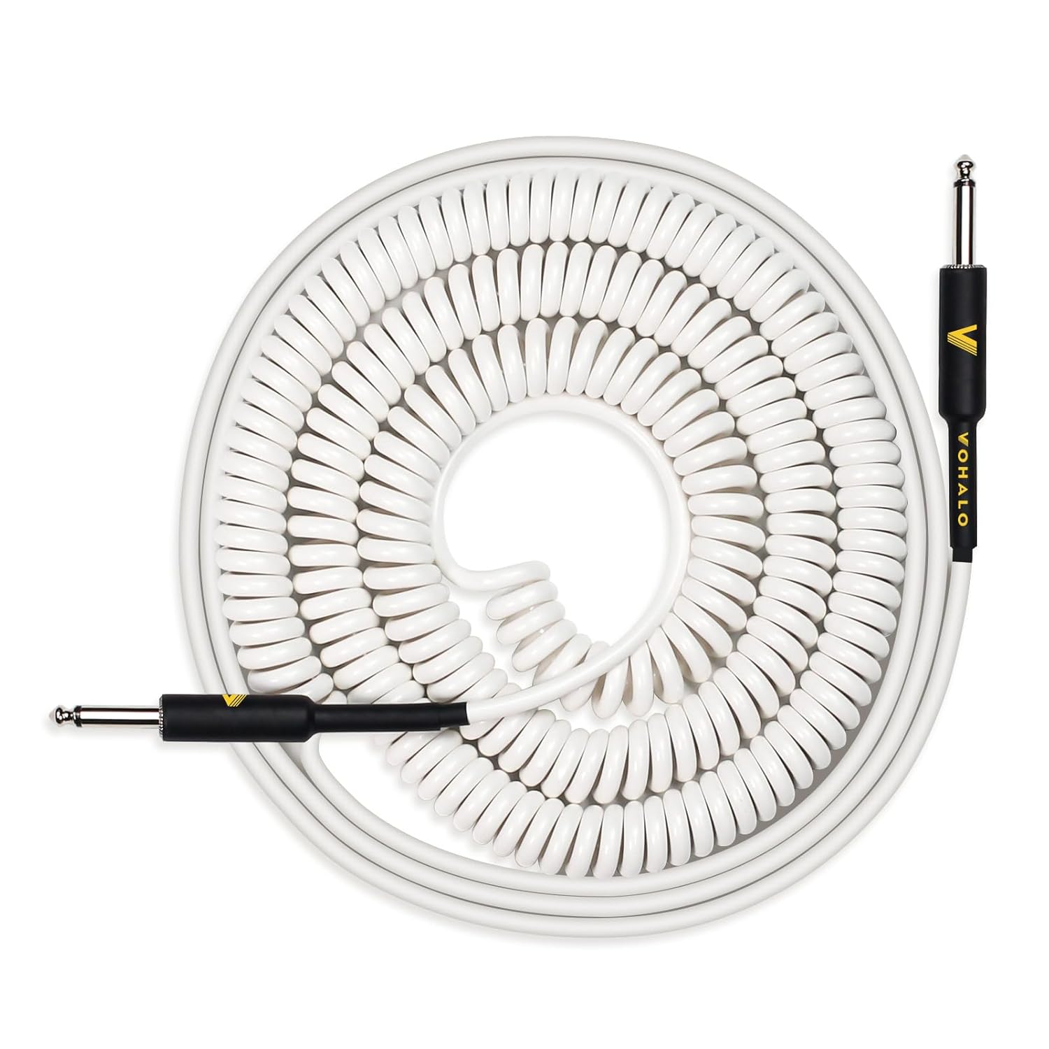 VOHALO Gitarren Instrumentenkabel 11M spiralförmiges Instrumentenkabel für Gitarre Bass 1/4 gerade auf gerade Weiß