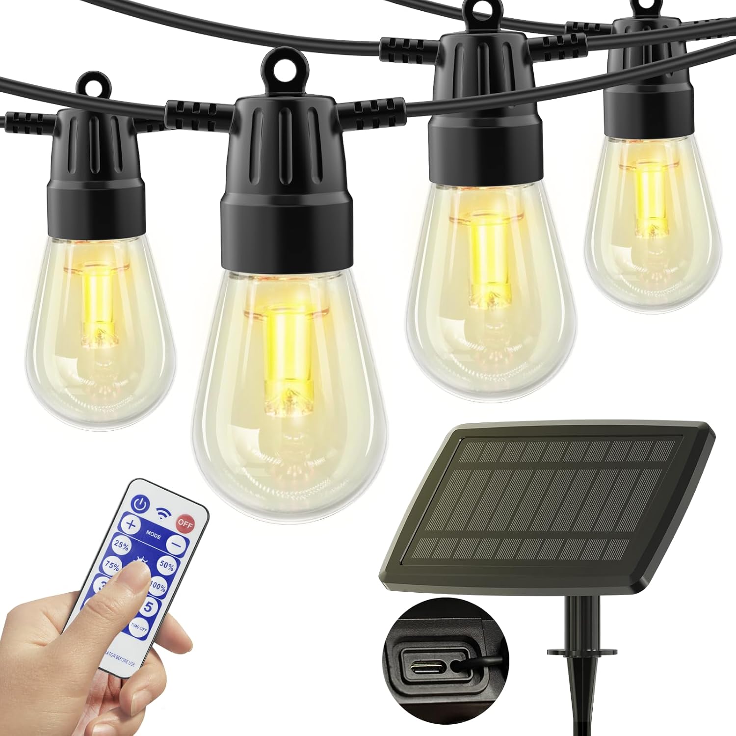 Voneta Solar-Außenlichterkette, wasserdicht, 15 m, 20 Glühbirnen, S14-Hängelichter mit Fernbedienung und App, Terrassen-Lichterkette für Partydekoration im Freien, Veranda [Energieklasse F] Farbe ...