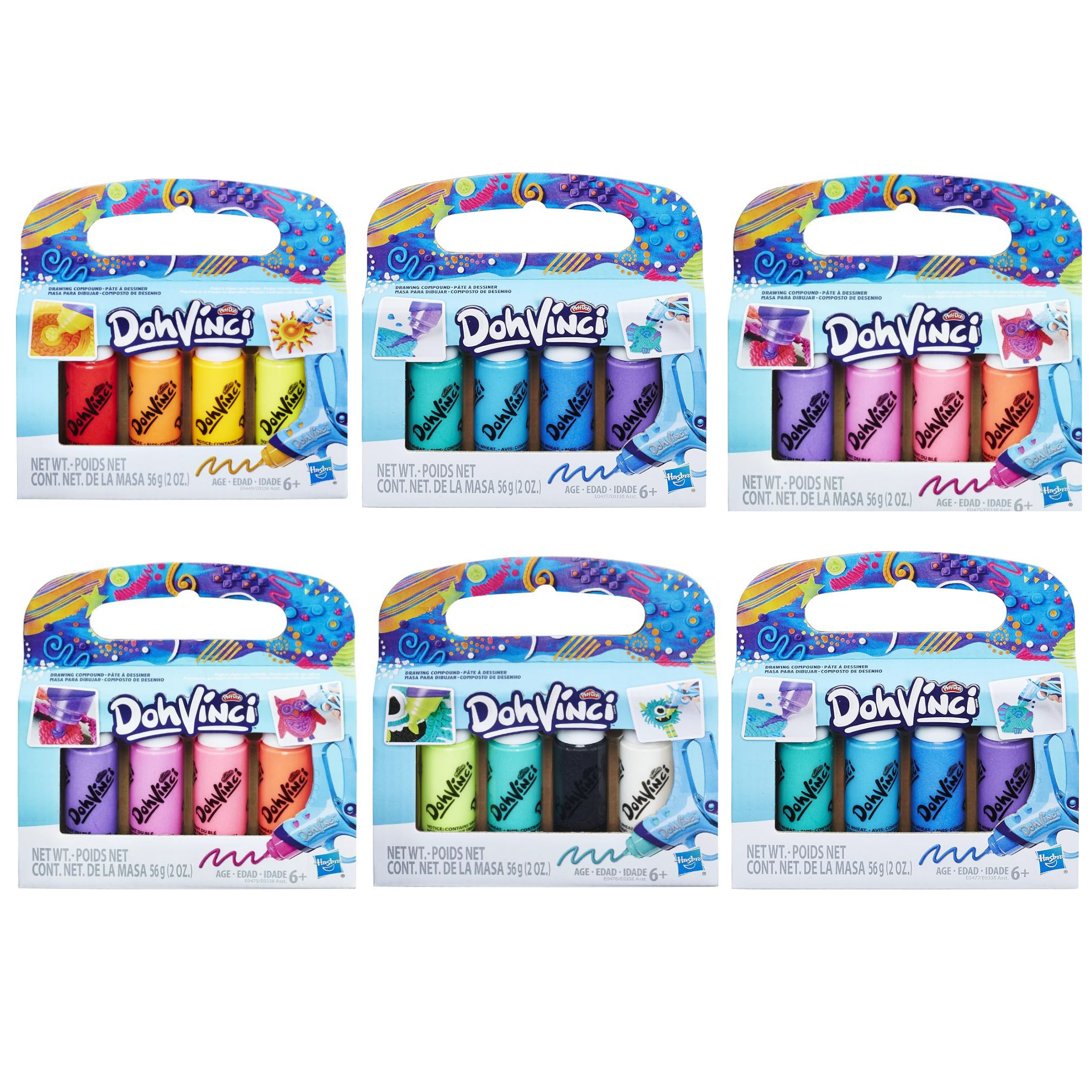 Hasbro Play-Doh DohVinci 6x4 Pack Knete Zeichenmasse Nachfüllset Kinderknete Kartuschen Basteln Schablonen Kreativ Mischfarben Pastell Tuben (24 Stück)