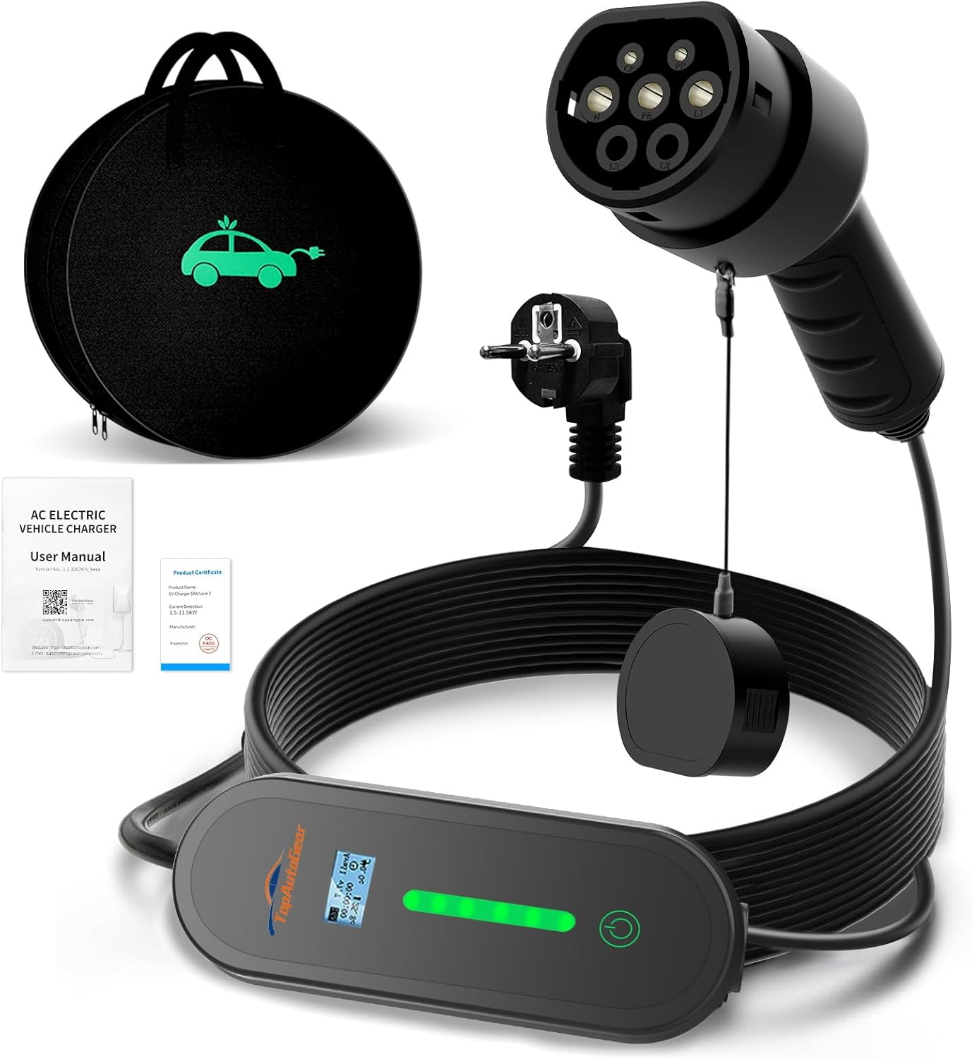 TopAutoGear EV Ladegerät Typ 2 Anschluss Ladekabel 10m, 6/8/10/16A Einstellbare Strom IP65, wasserdichte Ladegerätbox, Klarer LCD-Anzeige, Aufbewahrungstasche Marke TopAutoGearArtikelgewicht 3,2...