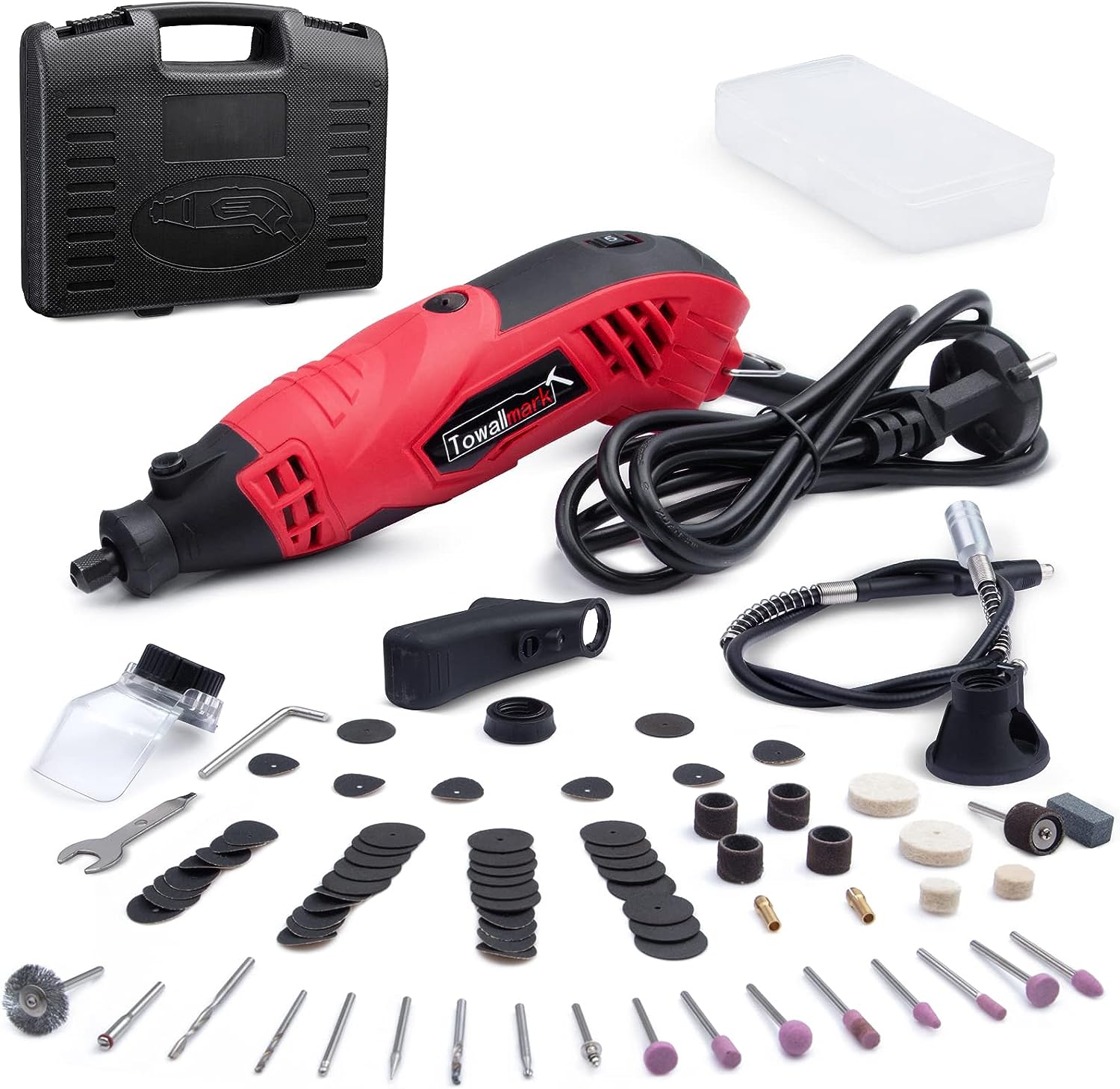 Towallmark Drehwerkzeug-Set, 1,5 A, variable Geschwindigkeit, drehbares Werkzeug mit Flexschaft, 88-teiliges Zubehör und 4 Aufsätze, perfekt für Build- und DIY-Projekte – Schneiden, Holzschnitzen, Gravieren, Schleifen