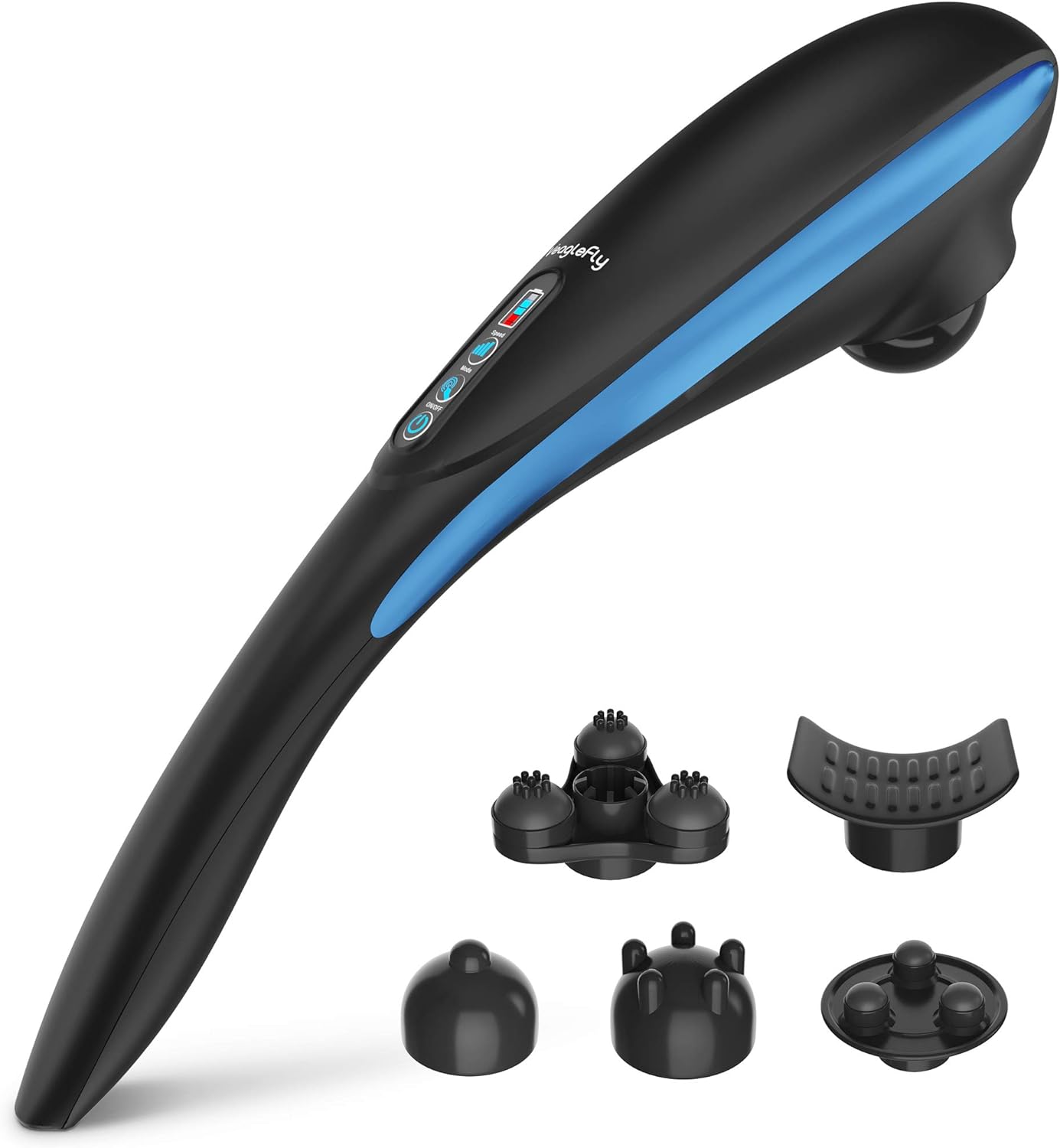 Veaglefly Schnurloses Handmassagegerät, Elektrisches Tiefengewebe-Percussion-Rückenmassagegerät mit 6 Stützknoten und variabler Intensität für die Körpermassage mit tragbarem Design