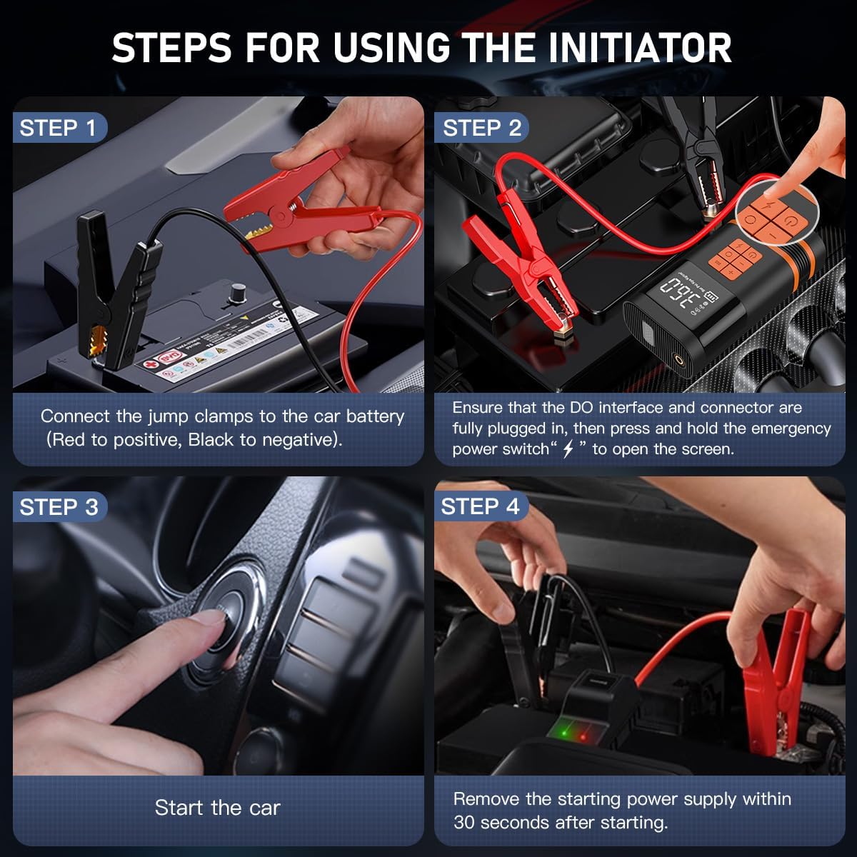 AUSI Starterhilfe mit Luftkompressor, 150 PSI elektrische Luftpumpe 1000A für Auto, 4 x schnelle Powerpumpen, Powerpumpe für Auto, Kabel lose, tragbar, mit digitalem Manometer für Auto/Motorrad/Fahrrad/Ball