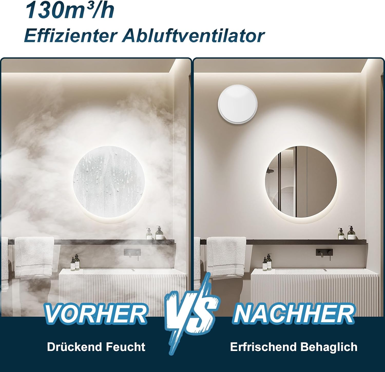 Badlüfter 100mm, 12W Leiser Abluftventilator, 130m³/h Starker Lüftung Wandventilator