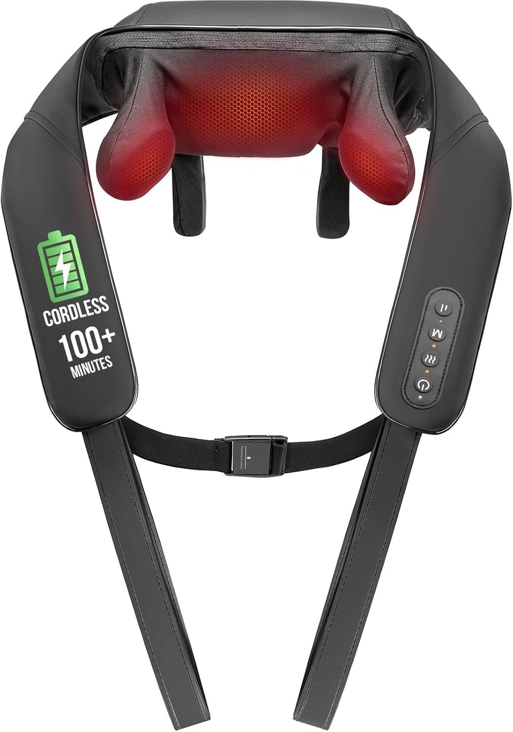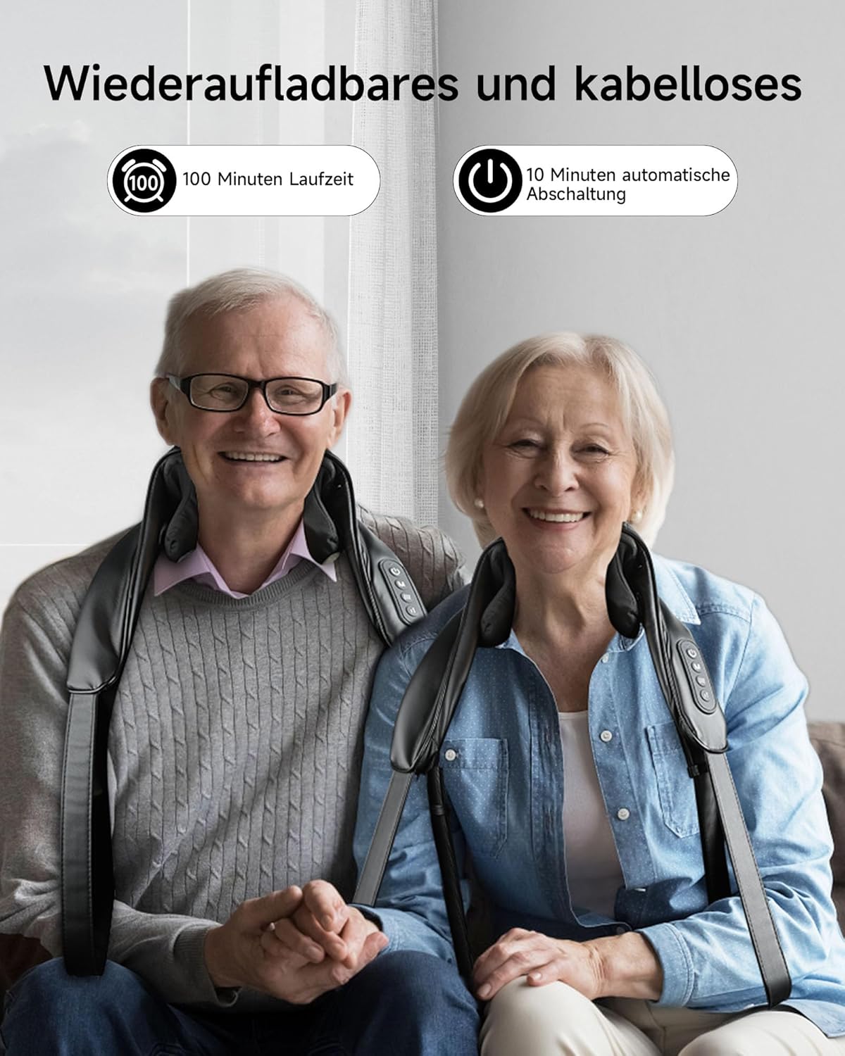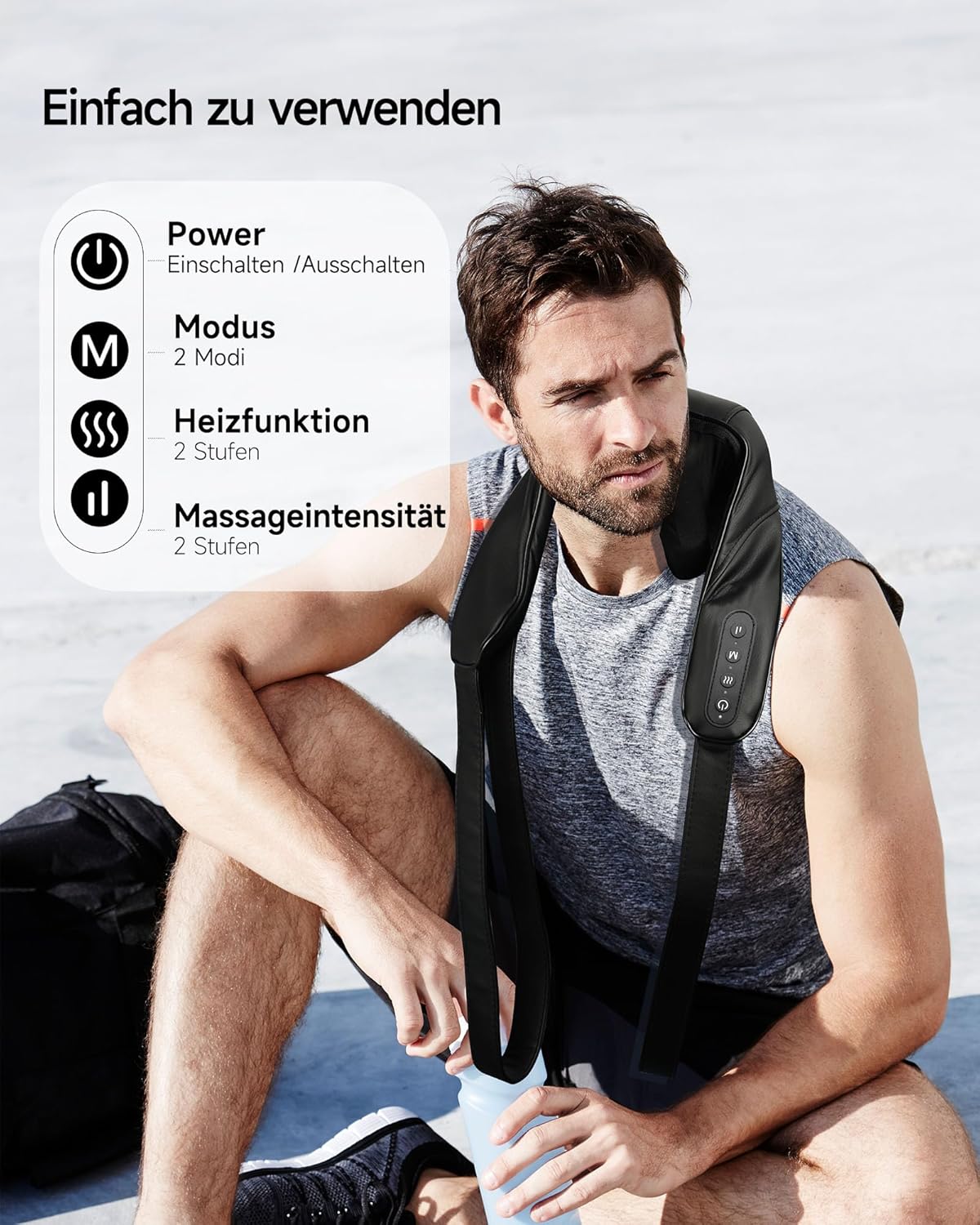 Wohltuende Wärmetherapie: Es gibt 3 verbesserte Heizzonen, um Ihr Massageerlebnis zu verbessern. Die sanfte Wärme des schulter Massagegeräts fördert effektiv die Durchblutung und lindert effektiv Muskelkrämpfe und Verspannungen.