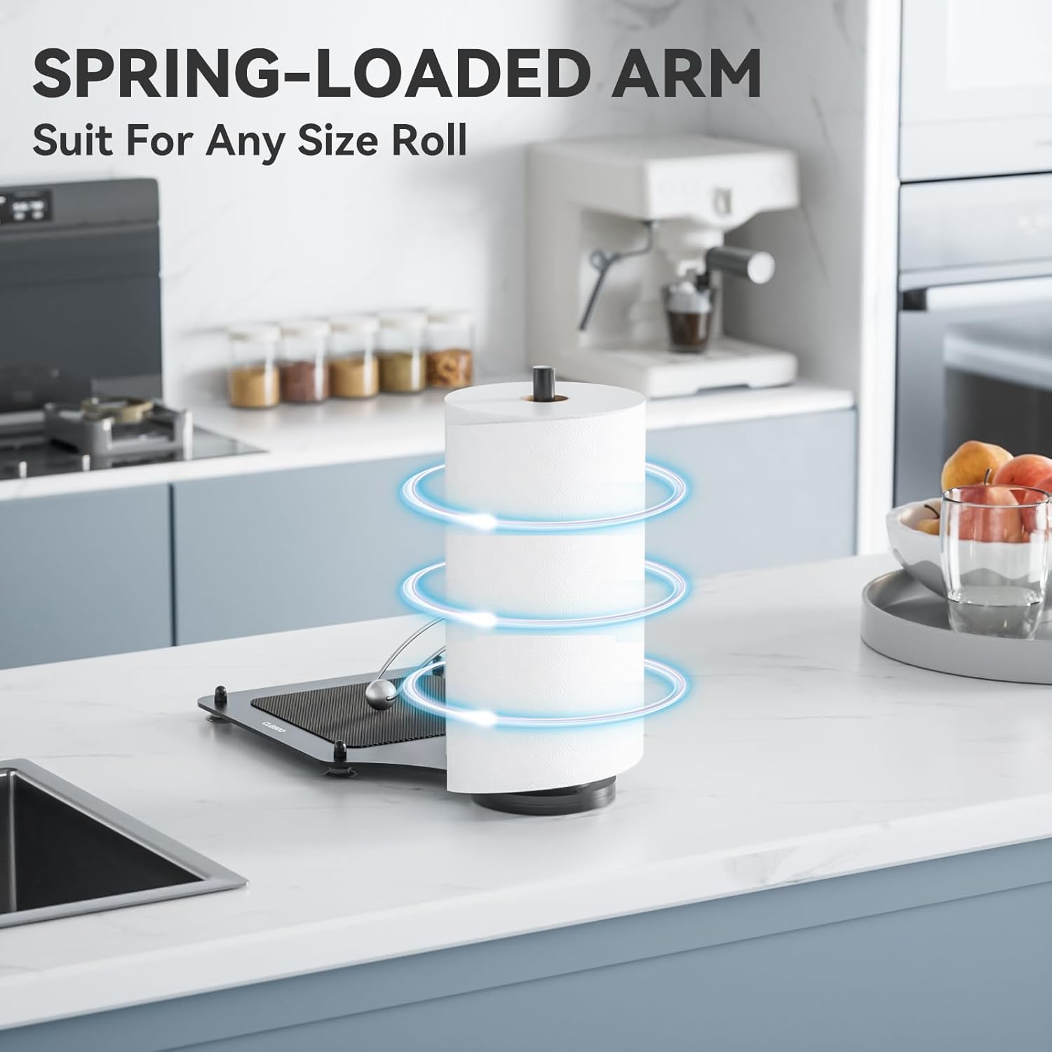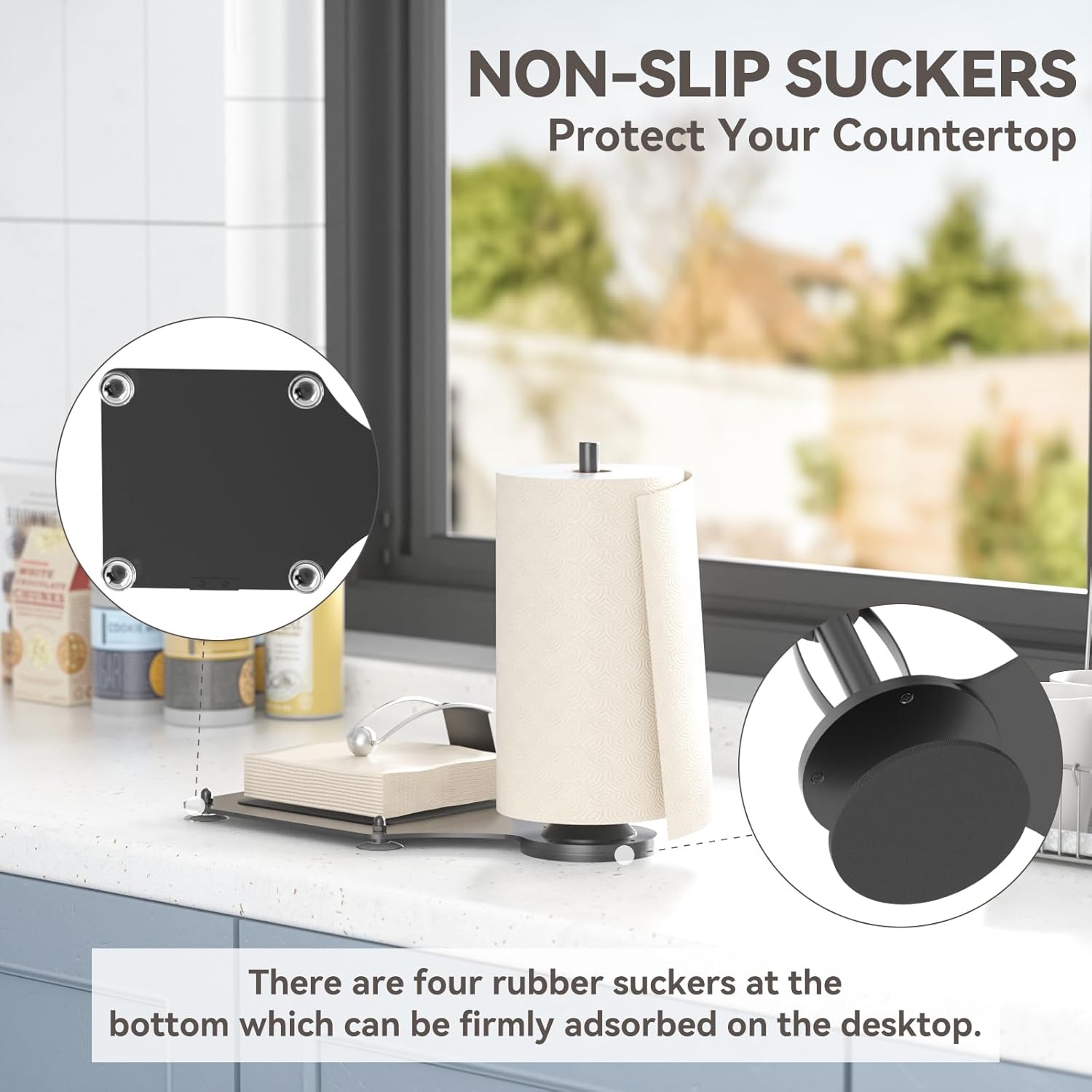 【Saugnapf-Design & Silikon-Pad】 Die Basis des Küchenpapierhalters ist mit vier Saugnäpfen ausgestattet, die einen sicheren Halt auf Tischplatten gewährleisten. Der Küchenrolle Halter enthält auch ein Silikonkissen, das die darauf abgelegten Gegenstände stabilisiert.