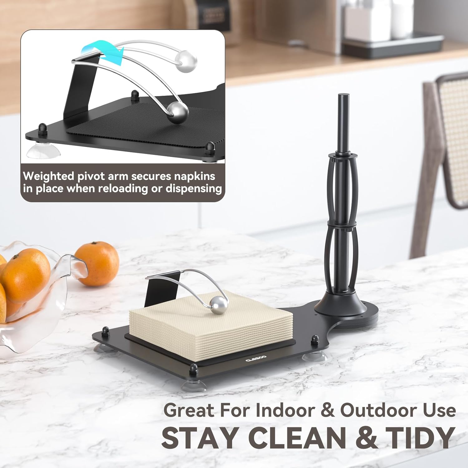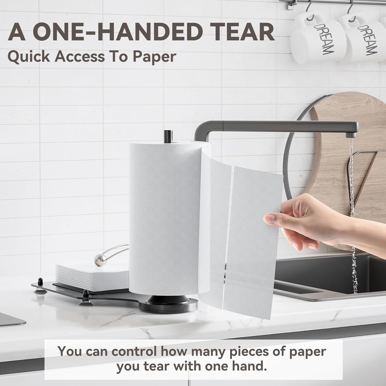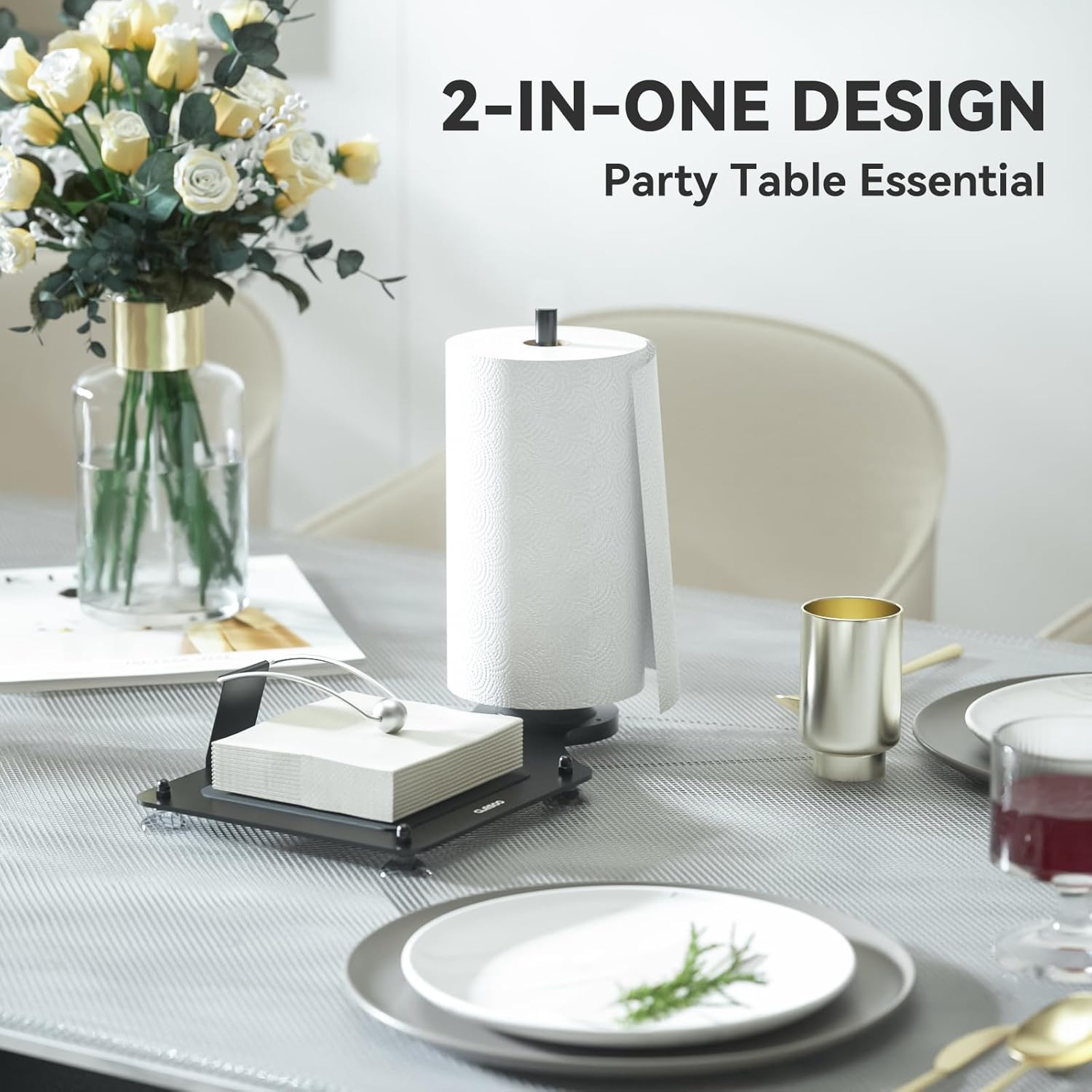 【2-in-1 Innovatives Design】Der 2 in 1 Serviettenhalter und Küchenrollenhalter Stehend kombiniert einen vertikalen Papierhandtuchhalter und einen flachen Papierserviettenhalter, der bequem zwei Arten von Papierhandtüchern gleichzeitig aufbewahren kann, um Platz zu sparen; der beschwerte Arm des Serviettenständers kann frei entfernt und als kleines Tablett verwendet werden, um Salz, Pfefferstreuer und andere kleine Gegenstände zu halten.