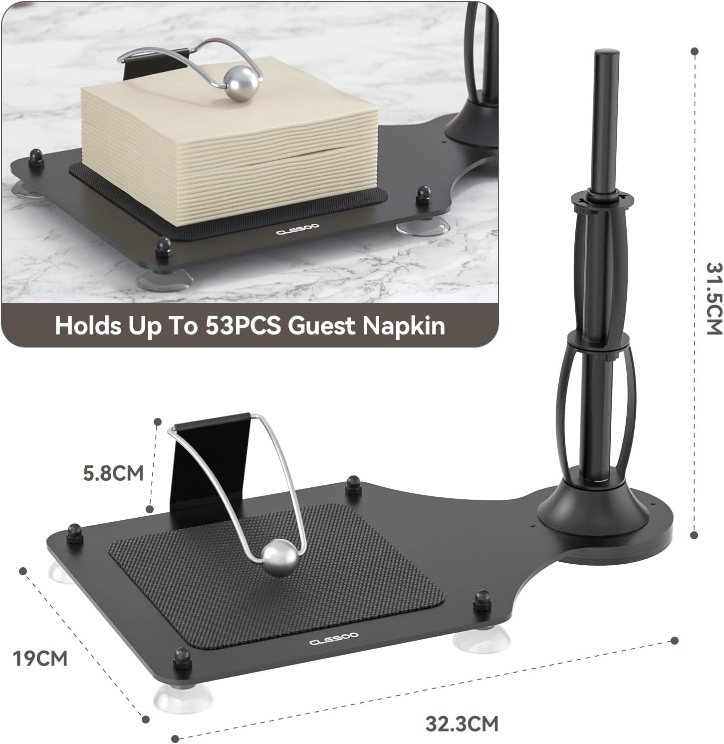 CLESOO 2 in 1 Serviettenhalter und Küchenrollenhalter Stehend, Multifunktionaler Mattschwarzer Metall Beschwerungsarm für Restaurant Esszimmer