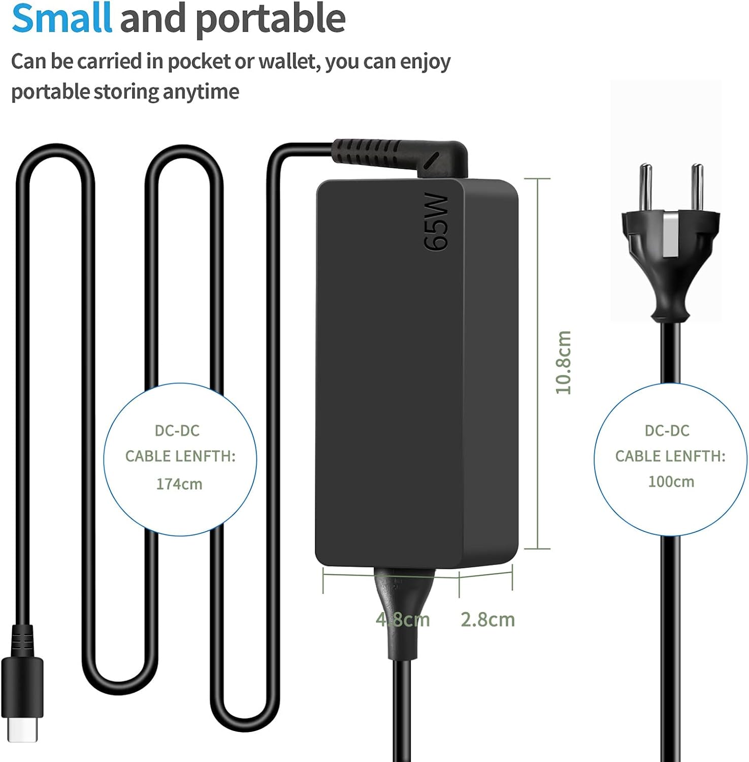 Cnamszou 65W USB C Netzteil PD Ladegerät Laptop Ladekabel Type C Adapter für Lenovo ThinkPad Huawei Matebook Pro air HP Spectre Asus Acer Dell XPS Xiaomi Air Typ C 65Watt PC Schnellladung Charger