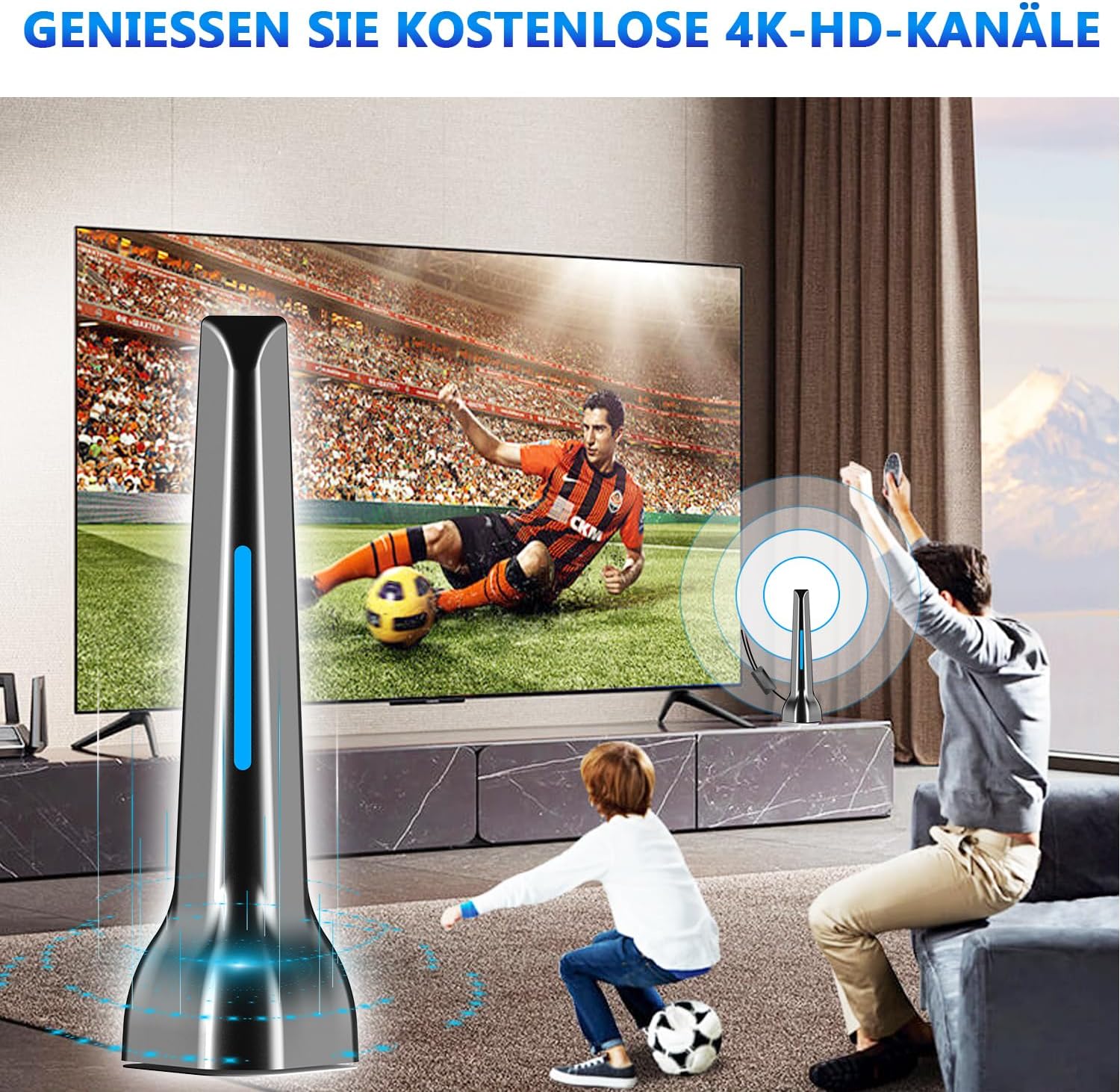 DVBT2 Antenne, zimmerantenne DVB-T & DVB-T2 Antennen mit Verstärker, 2025 Großer Reichweite und 360° Empfang, Zimmerantenne für Fernseher mit Starkem
