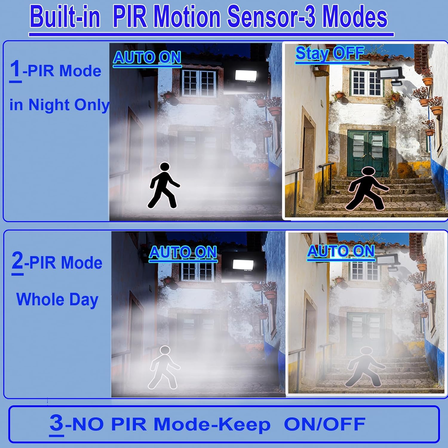 LED-Strahler mit Bewegungsmelder: Leistungsstarker Bewegungsmelder, der bei Nacht oder bei Gänsen leuchten kann. Tag wird automatisch aktiviert oder als normaler Beamer mit Bewegungsmelder verwendet. Über die Fernbedienung können Sie nach Ihren Wünschen einen ausschalten. Unterstützende 3-Modi von Arbeitsmodi schaltet sich frei