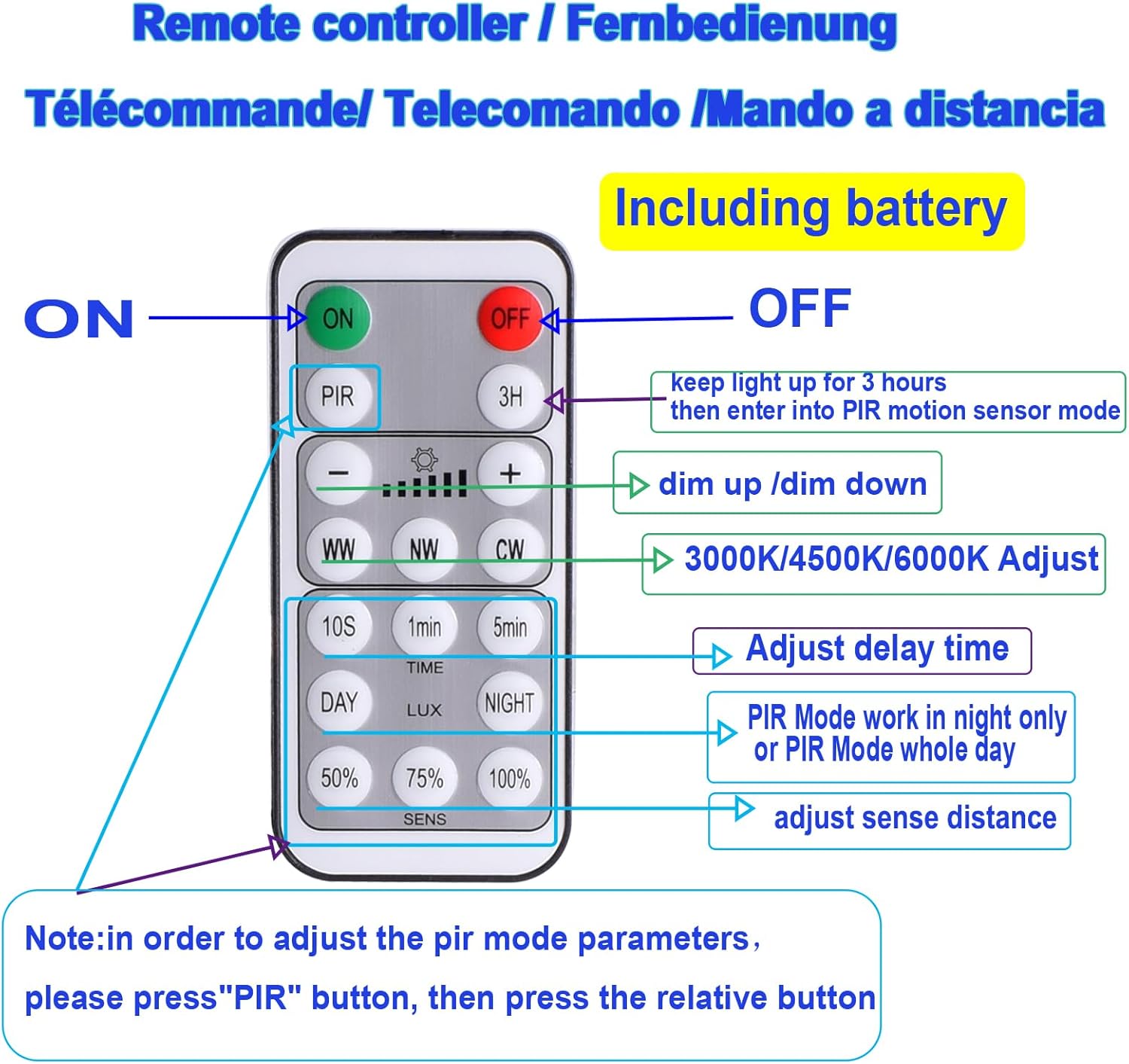 Zusätzliche Betriebsmodi: Rundum-Langlichtmodus, PIR-Bewegungserkennungsmodus, Nachtmodus, Nachtmodus, einstellbare Temperatur, einstellbares Lumen. Gehen Sie auf die unterschiedlichen Bedürfnisse Ihres Lebensstils ein, verbringen Sie Zeit in unterschiedlichen Umgebungen und sparen Sie Energie.
