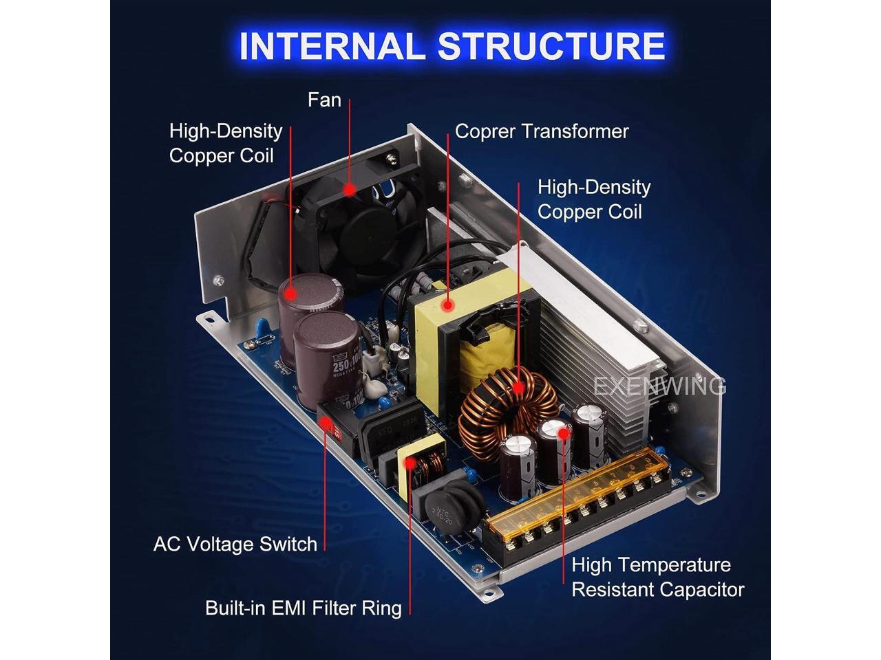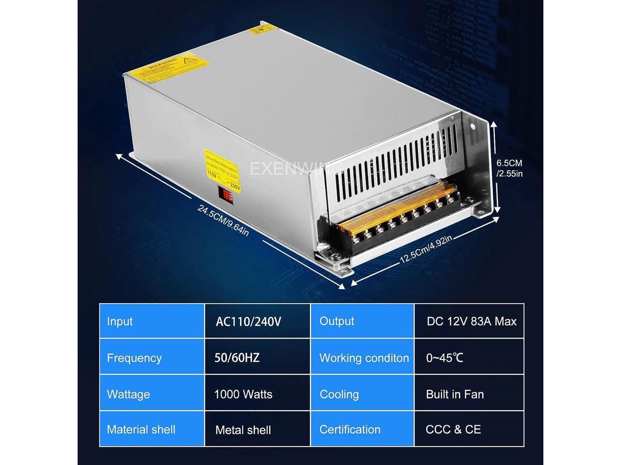 EXENWING Schaltnetzteil Trafo 12V 83A | 1000Watt Netzteil Transformator Spannungswandler AC 110V/220V auf DC 12Volt mit Netzkabel für LED-Streifen,3D Drucker,und Industrielle Ausstattungng