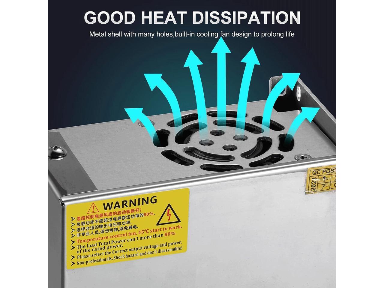 Gute Wärmeableitung – Dieser Niederspannungs-Netztransformator von 110 V/220 V auf 12 V besteht aus Metall mit vielen Löchern, was die Wärmeableitung effektiver macht und für Stabilität sorgt. Ein eingebauter Lüfter schützt den Wandler vor