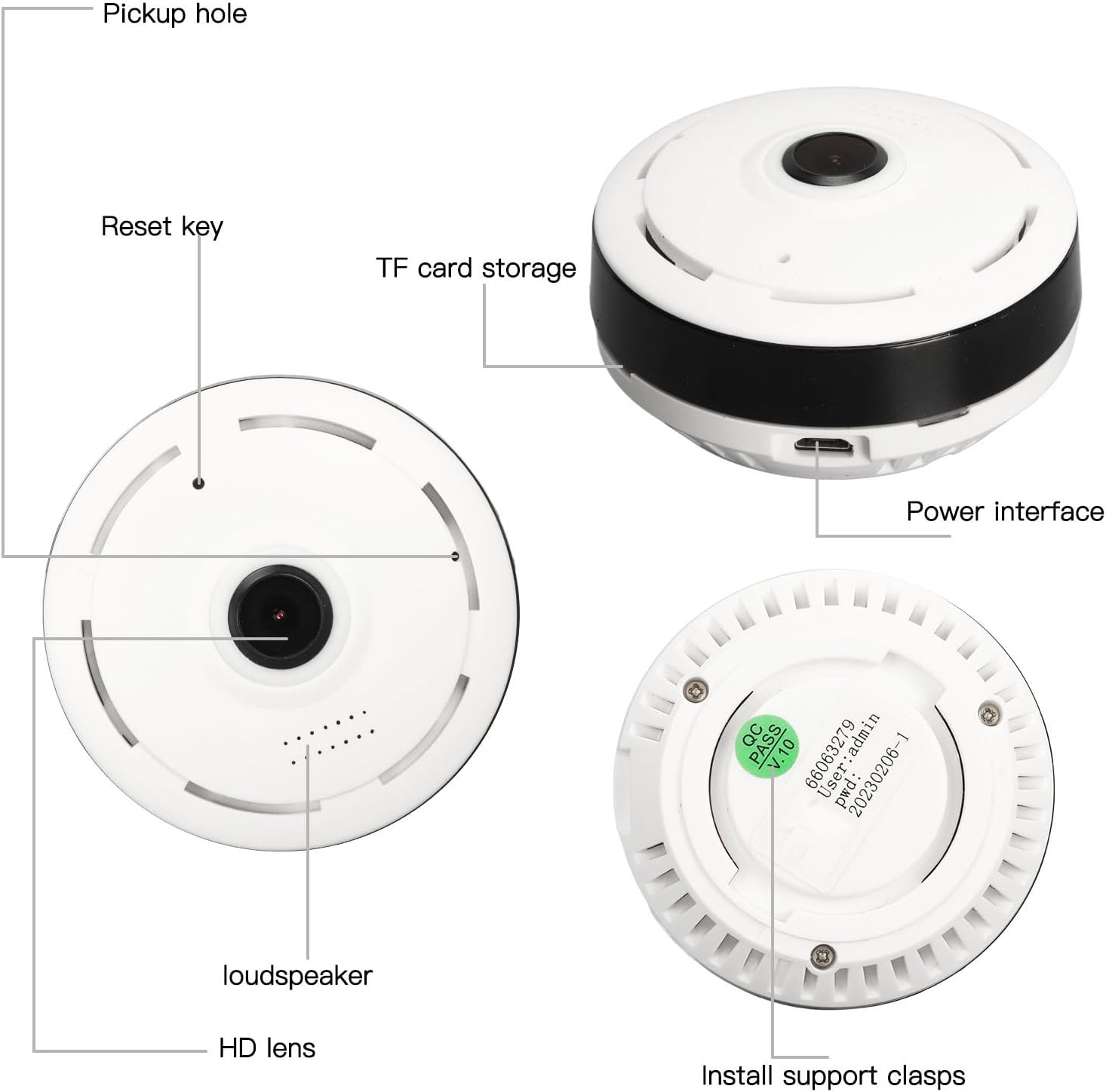 Zwei-Wege-Kommunikation: Die Fisheye-Überwachungskamera bietet eine stabile und klare Zwei-Wege-Audiokommunikation für reibungslose Gespräche über die Kamera.