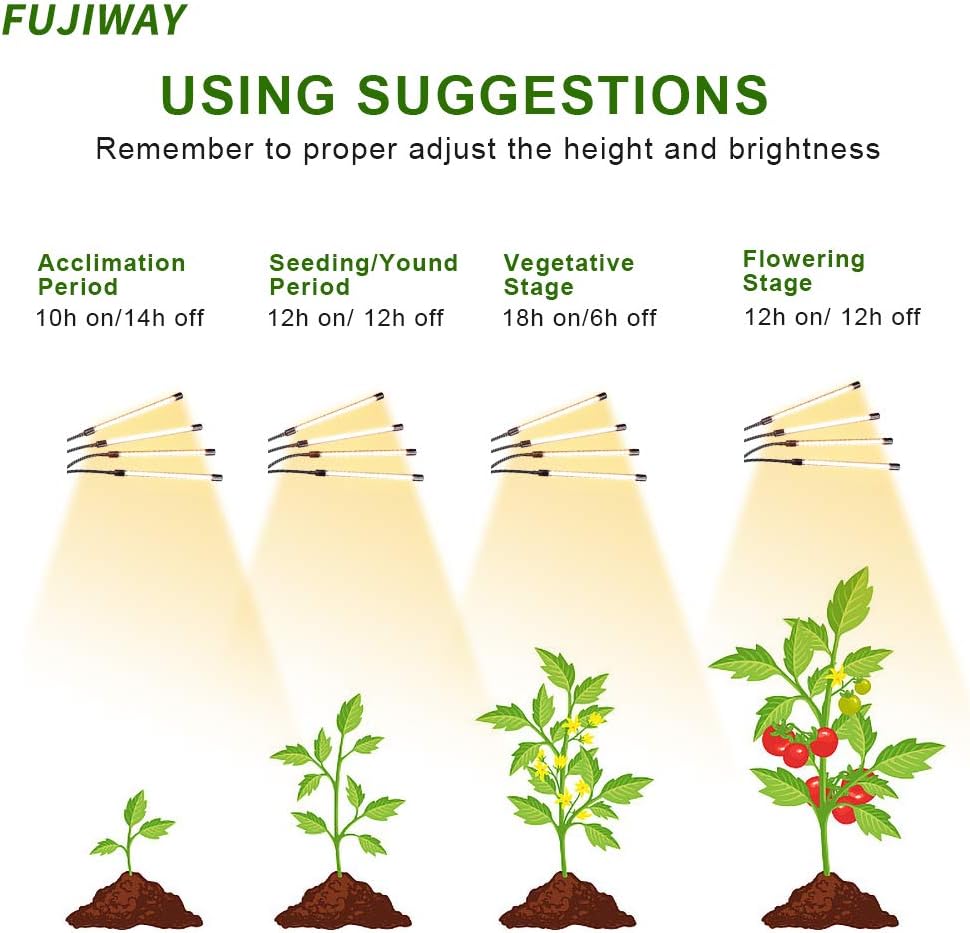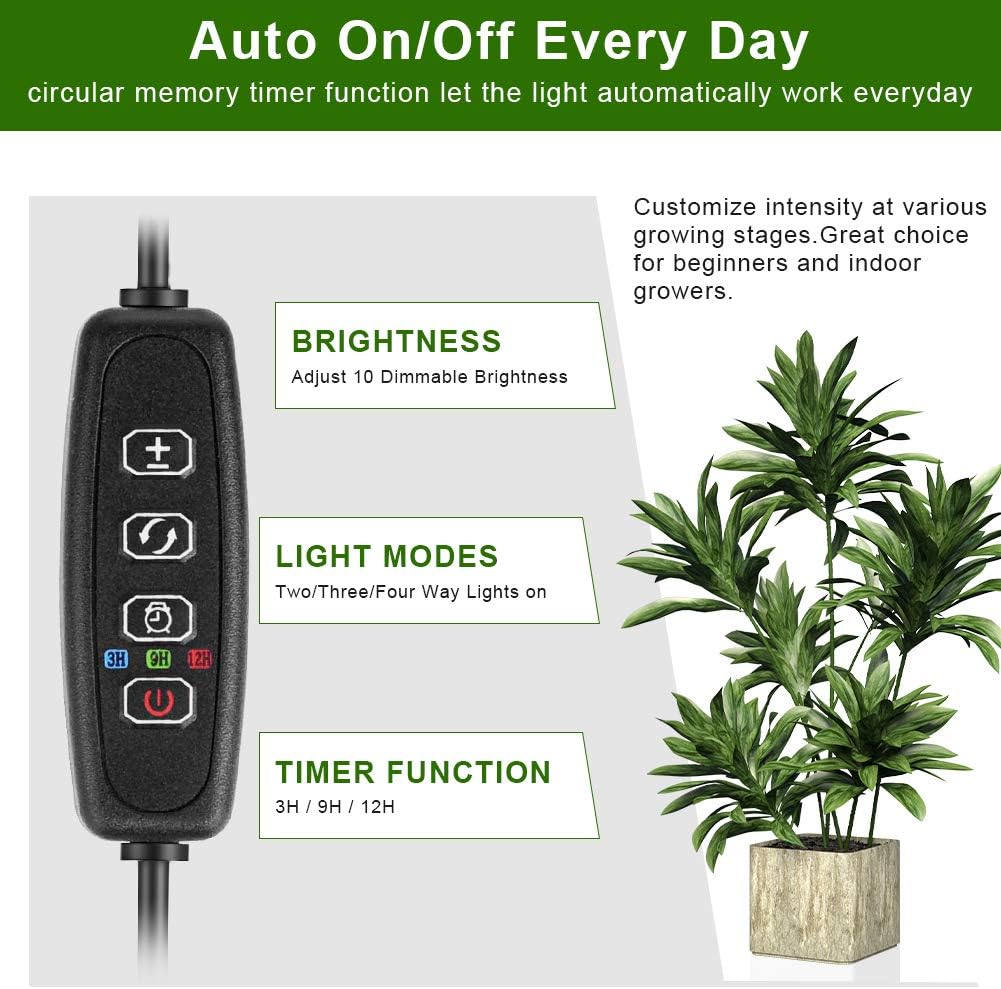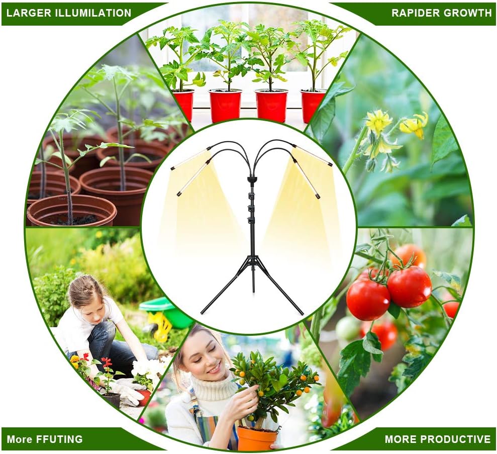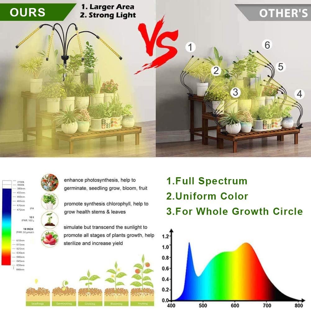FUJIWAY LED Planzenlicht, 80 LEDs, Vollspektrum LED Pflanzenwachslicht für Zimmerpflanzen, 4-Kopf-Wachstumslampe mit Timer, 360° verstellbarer Schwanenhals, 9 Dimmstufen für das Wachstum von Sämlingen, blühenden Früchten