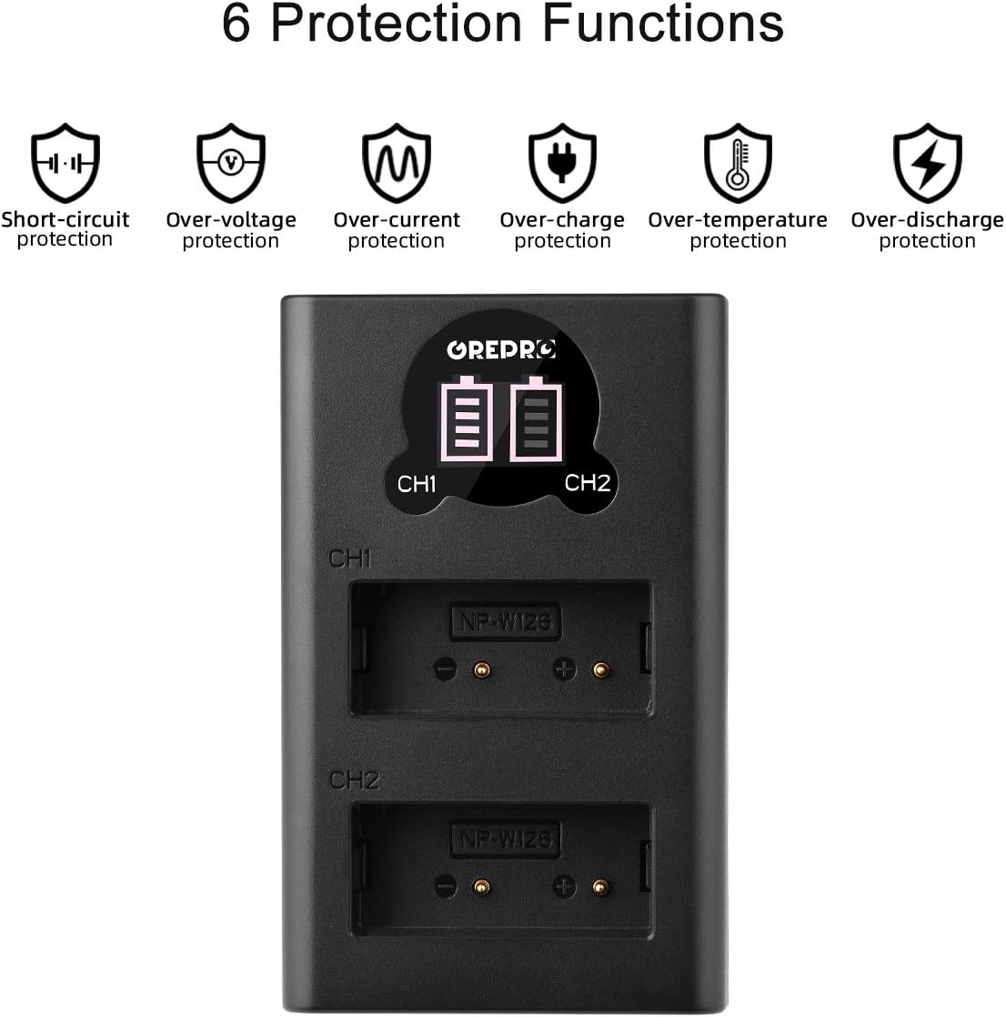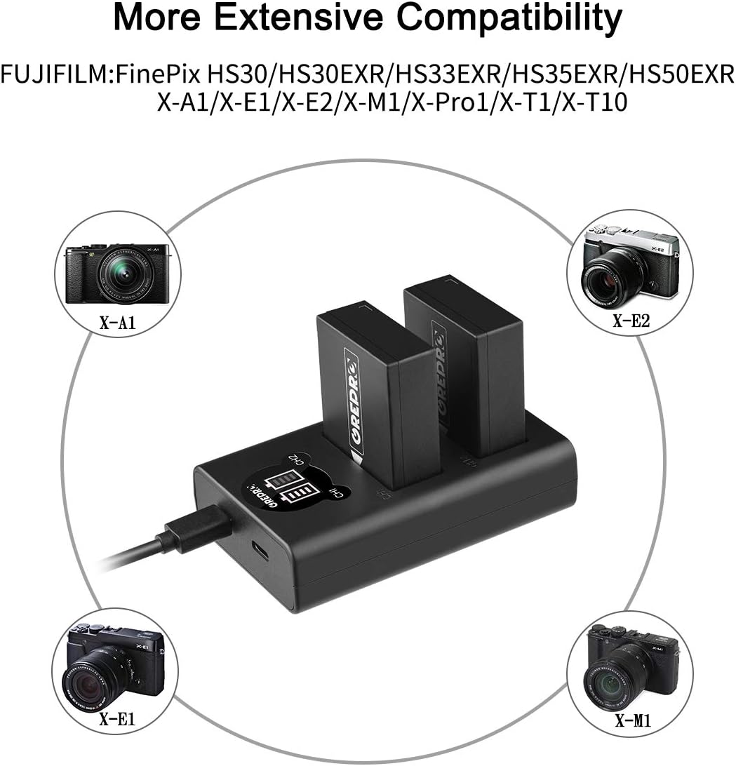 Grepro Akku-Ladegerät-Set für Kamera, 2er-Pack, wideraufladbarer NP-W126 Akku