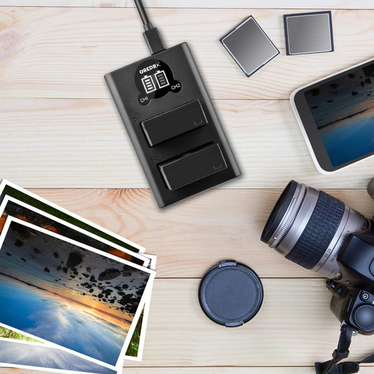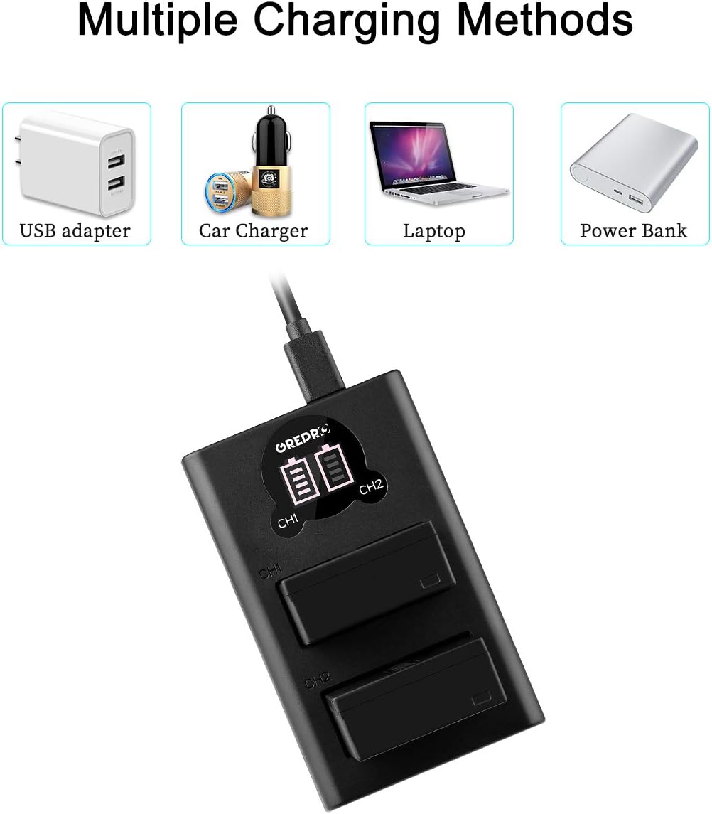 Unser Produkt besteht aus hochwertigen Lithium-Ionen-Materialien, inklusive integrierter intelligenter IC-Chips und einem Schutzsystem. Hohe Qualität für längere Videoaufnahmen und mehr Fotoaufnahmen.