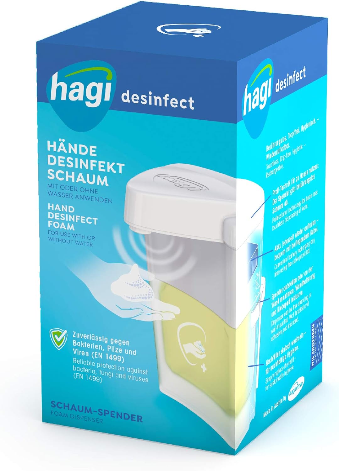 hagi Hand-Desinfektionsschaum: berührungslos aus dem automatischen hagi Schaumspender (Akku-Technologie), angenehm duftend