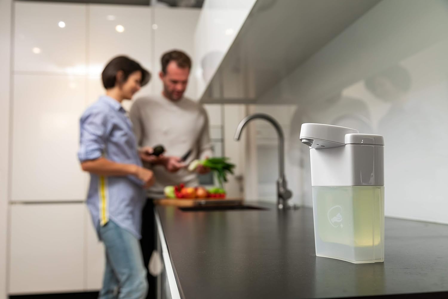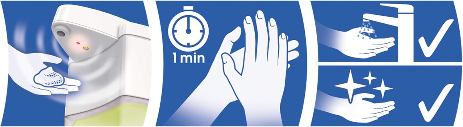 Lieferumfang: 1 berührungsloser Spender mit 180-ml-Nachfüller, Wandhalterung mit doppelseitigem Klebeband, USB-C-Ladekabel zum Wiederaufladen
