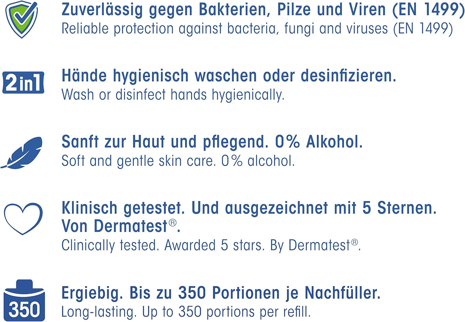 Alkoholfreie 2-in-1-Händehygiene: Hände hygienisch waschen (mit Wasser) oder Hände desinfizieren (ohne Wasser)
