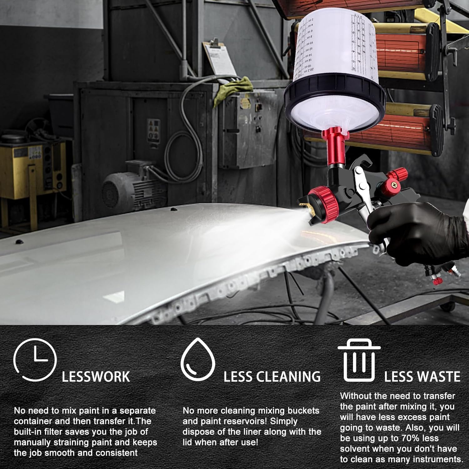【Umweltschutz und große Kapazität】 Dieses HVLP-Spritzpistolen-Set verfügt über eine hervorragende Sprüheffizienz, keine Umweltverschmutzung, Umweltschutz und einen 600-cm3-Schwerkraftförderer mit großer Kapazität