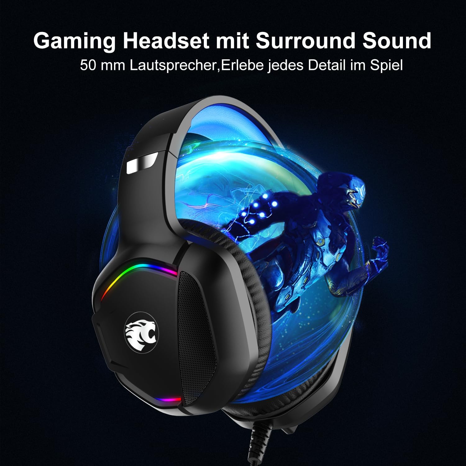 【Stereo Surround Sound】 Lautsprechertreiber mit 50 mm Neodym-Magneten bieten unglaublich detaillierte Klangwelten, die das Spiel zum Leben erwecken, während die praktische Audio-Steuerung direkt am Kabel schnelle Anpassungen ermöglicht.