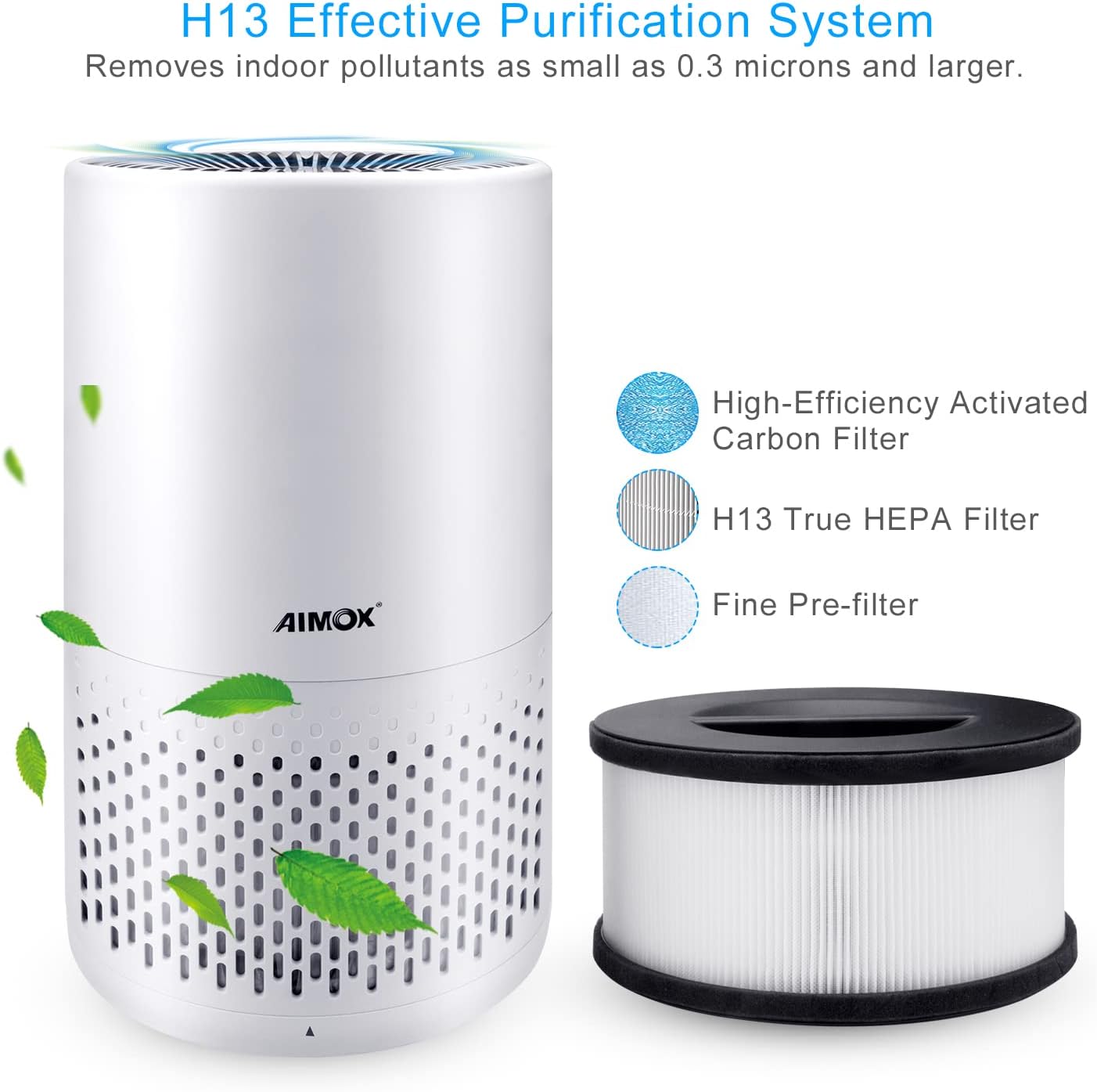 Intelligenter Luftreiniger zum Reinigen und Säubern, Aimox mit Luftqualitätssensor, Luftfilter, 3 Funktionen, Timer, Nachtlicht, CADR 136 m³/h, HEPA-Filter, Funktionen mit APP-Unterstützung, Alexa und Google