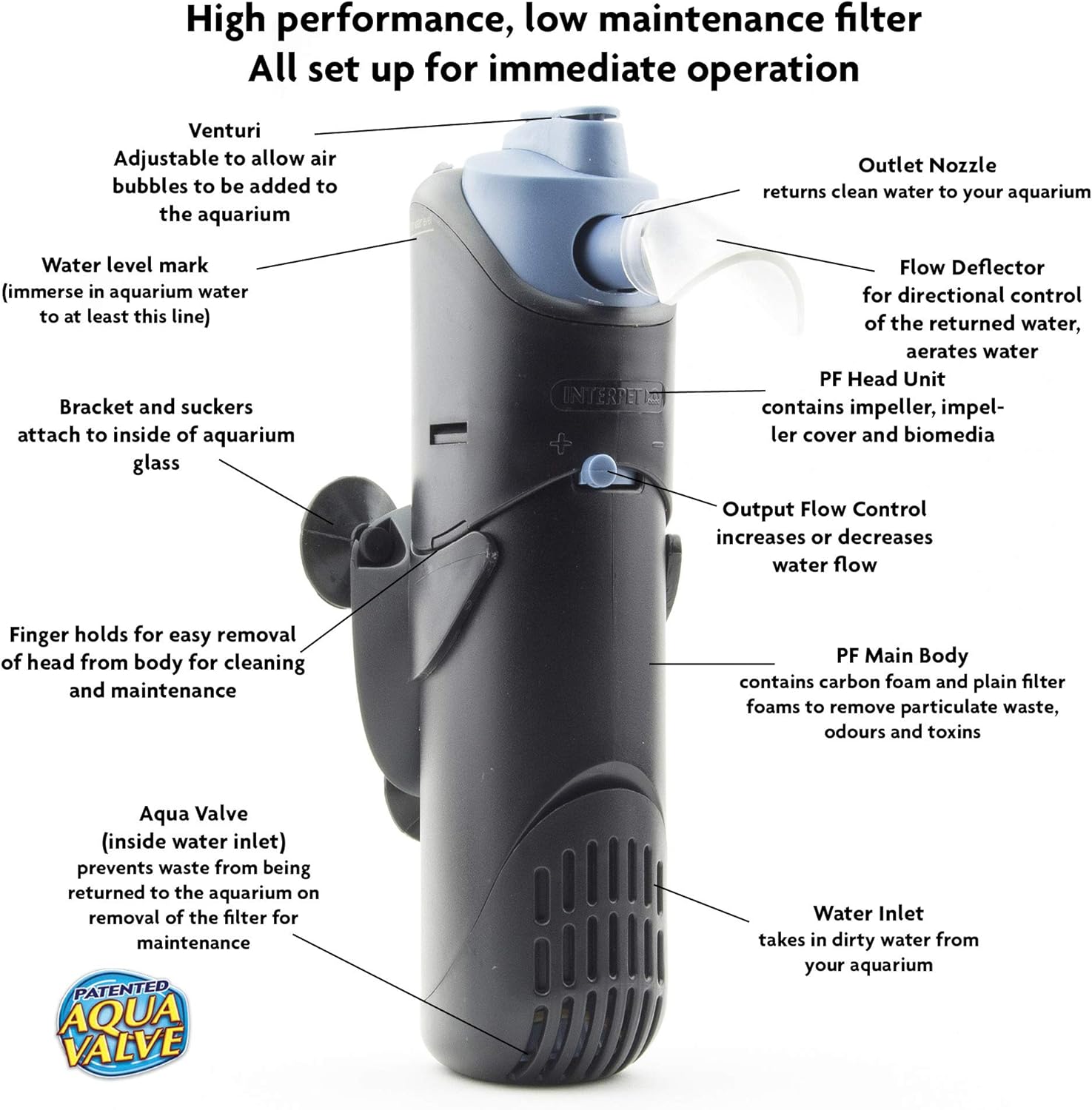 Interpet interner Aquarium Fischtank PF2 Powerfilter, reinigt Wasser,