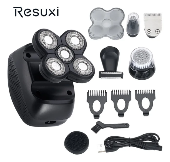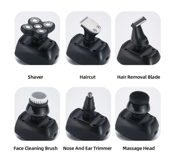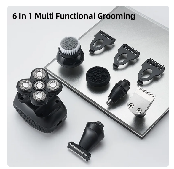 IPX6 wasserdichter Elektrorasierer für Männer, Pflegeset, 6-in-1-Elektrorasierer, Kabellos, wasserdicht, Nass- und Trockenrasierer, rotierender Glatzenrasierer