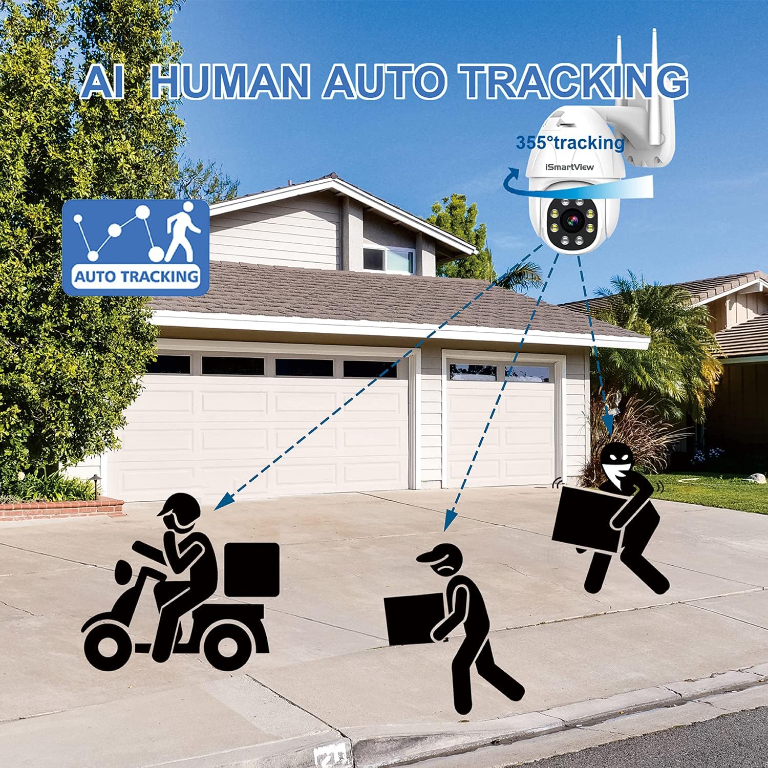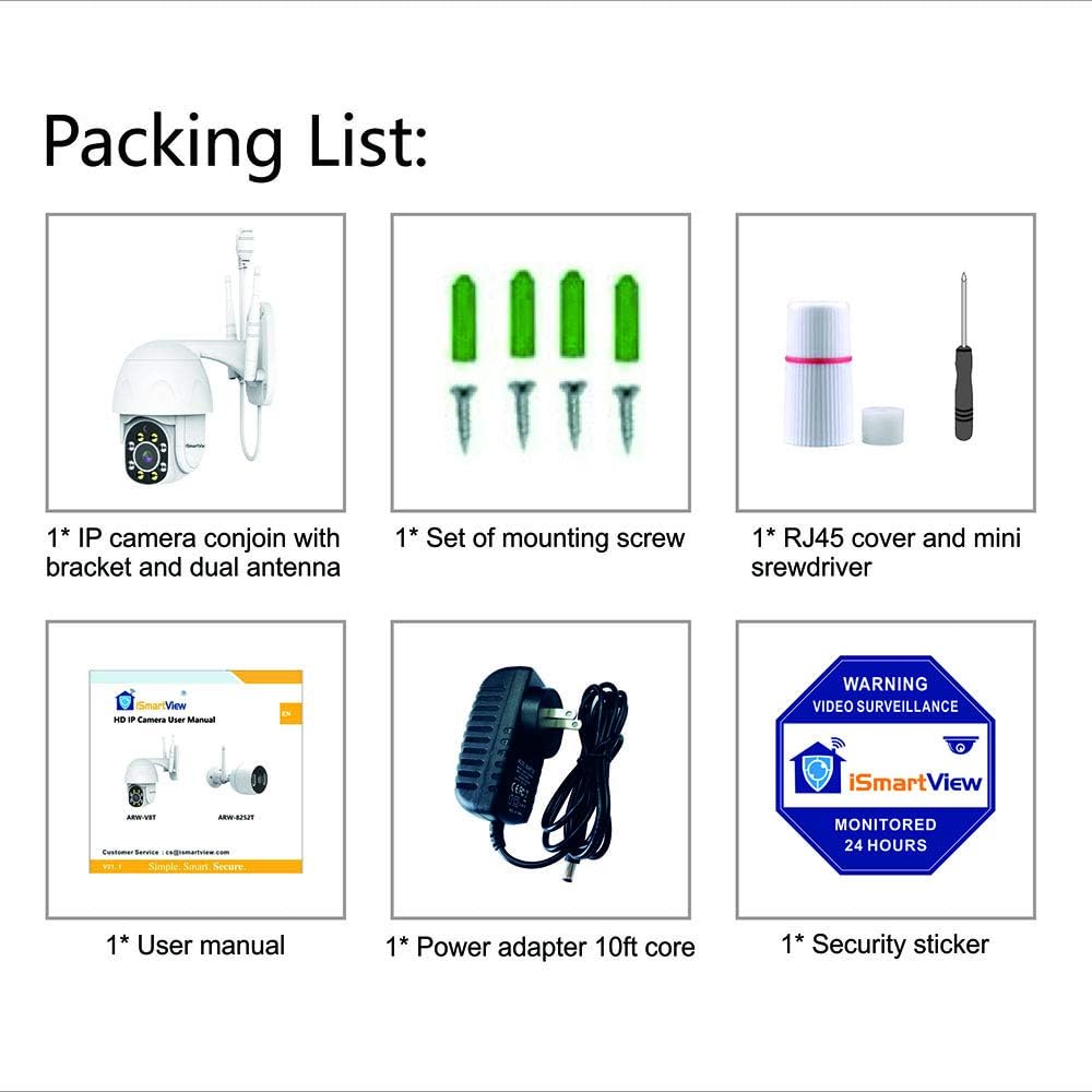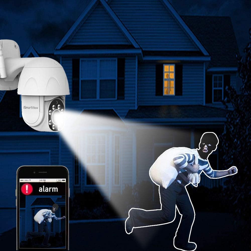 * Wetterfest für draußen: iSmartView-Kamera unterstützt IP65-Standard, der auch bei Nässe langlebig ist. Winkel um 350° ~ Neigung um 110° ~ Drehung. 4-fach digitaler Zoom kann alle Bereiche abdecken. Integriertes Mikrofon und Lautsprecher, 2-Wege-Audio, Zeitsteuerung usw., voll funktionsfähig.