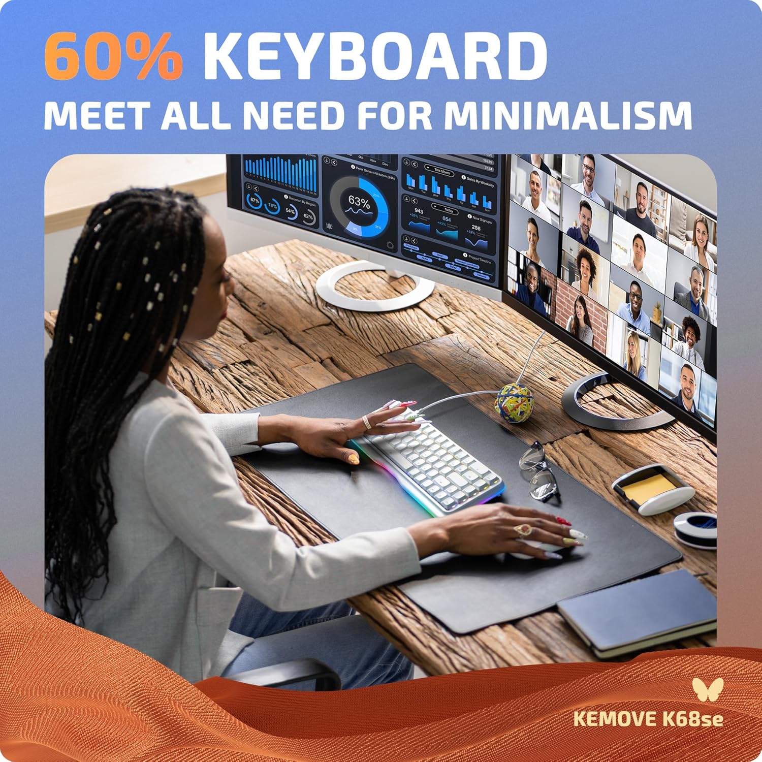 【Kompaktes Design】Das K68 verfügt über ein schönes Layout mit 68 taktilen und individuellen taktilen Funktionen, die volle Funktionalität und Benutzerfreundlichkeit ermöglichen. Dies liegt daran, dass Design, Gestaltung und Leistungsaspekte verbessert werden, was die Praktikabilität des Designs mit 60 % Layout verbessert.