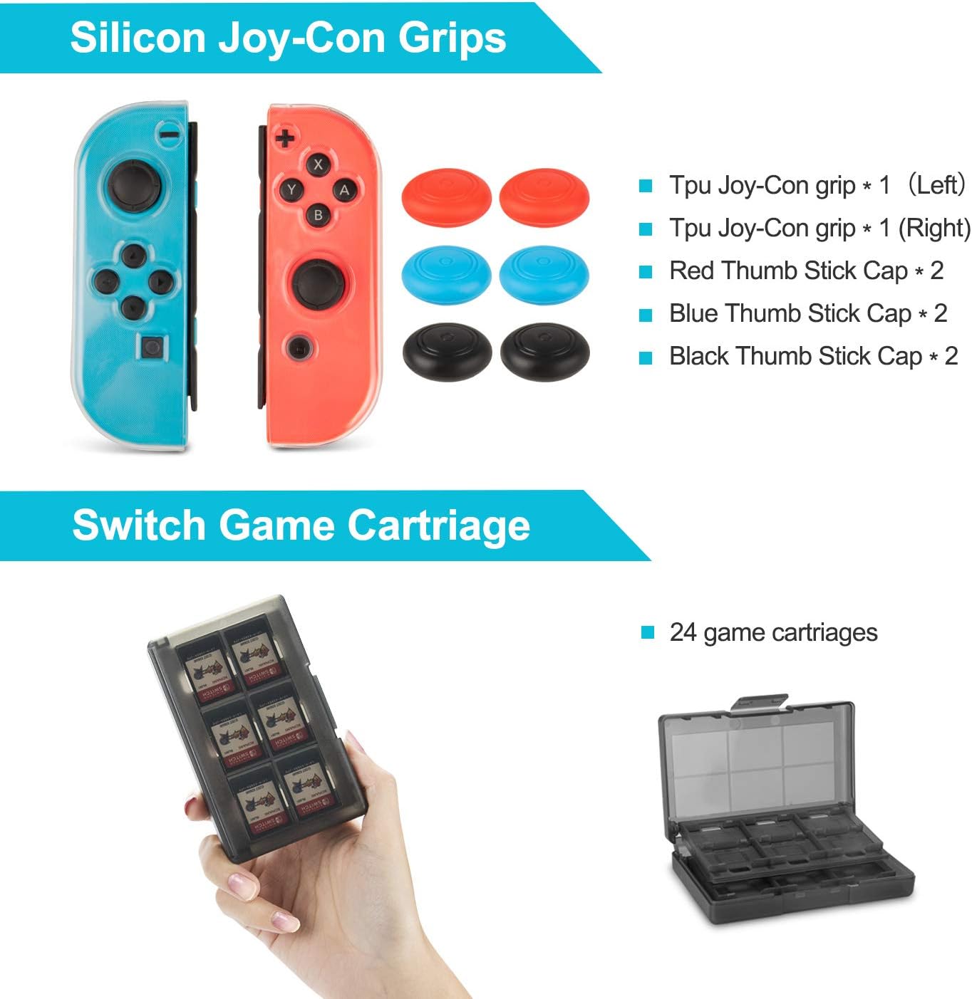 Kettenzubehörset für NS, inkl. Tragetasche, Ladestation, Spielständer, Verlängerungskabel, Spielkartenhülle, Displayschutz, J-Con-Griffe, Räder, Kristallhülle, TPU-Hülle, Kappen