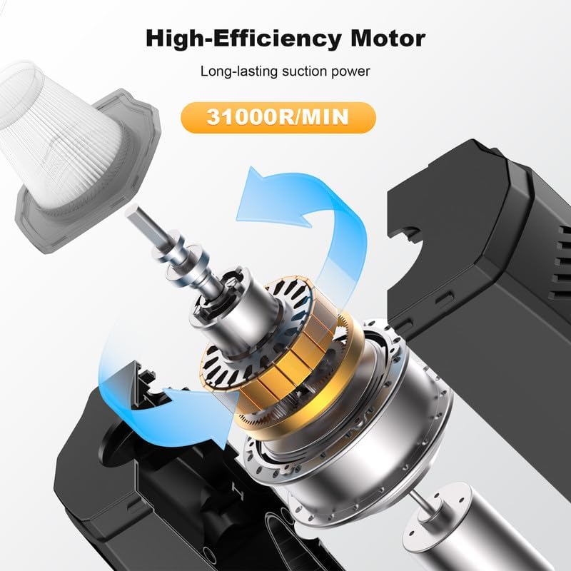 12.000 Pa starke Saugleistung: Basierend auf dem mechanischen Dämpfungsprinzip verfügt dieser Staubsauger über einen leistungsstarken 60-W-Motor mit einer maximalen Geschwindigkeit von 38.000 U/min. Es kann Staub und Schmutz innerhalb von Sekunden schnell entfernen. Es ist die perfekte Wahl für die professionelle Reinigung Ihres Autos und Ihres Zuhauses!