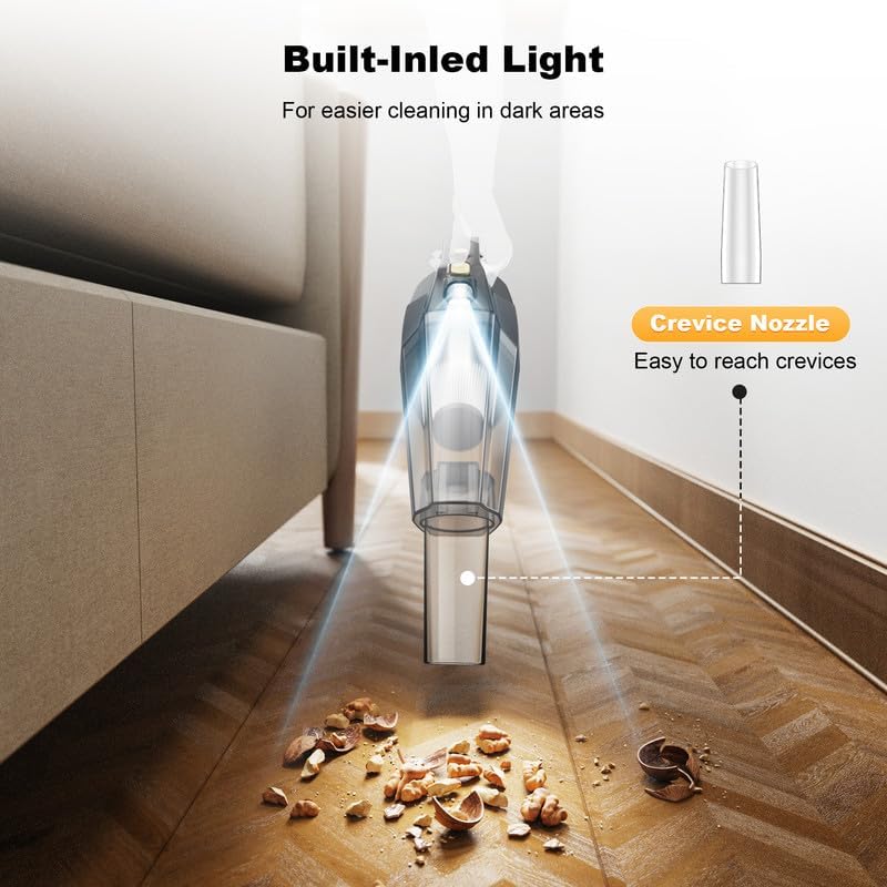 Einfache und umfassende Tiefenreinigung: Ausgestattet mit drei verschiedenen Düsen eignet sich dieser Staubsauger zum Reinigen von Sofaspalten und schwer zugänglichen Stellen in Ihrem Auto. Das helle LED-Design erleichtert die Reinigung in dunklen Ecken. Es ist außerdem mit einem waschbaren Filter ausgestattet, der Staub und kleine Partikel effektiv filtert, eine Tiefenfiltration erreicht und Sekundärverschmutzung verhindert.