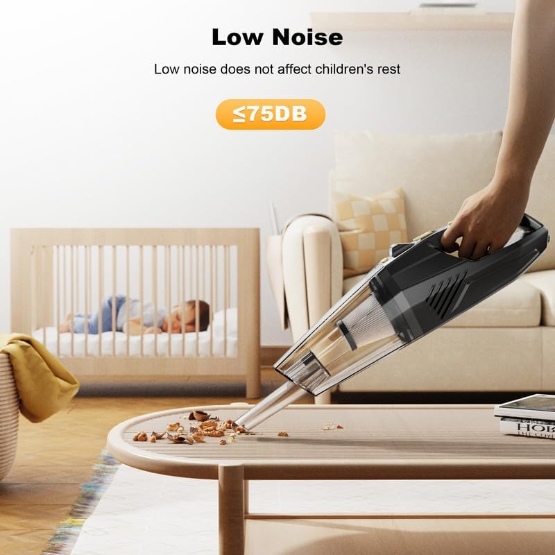 75 dB geräuscharm und leicht: Wir wissen, dass Sie einen leisen, aber leistungsstarken Handstaubsauger benötigen. Aus diesem Grund haben wir den Geräuschpegel des Staubsaugers auf 75 dB eingestellt. Dank des geringen Gewichts von nur 0,6 kg sind alle Reinigungsarbeiten schonend für Hände und Gelenke und erfordern keinen Kraftaufwand.