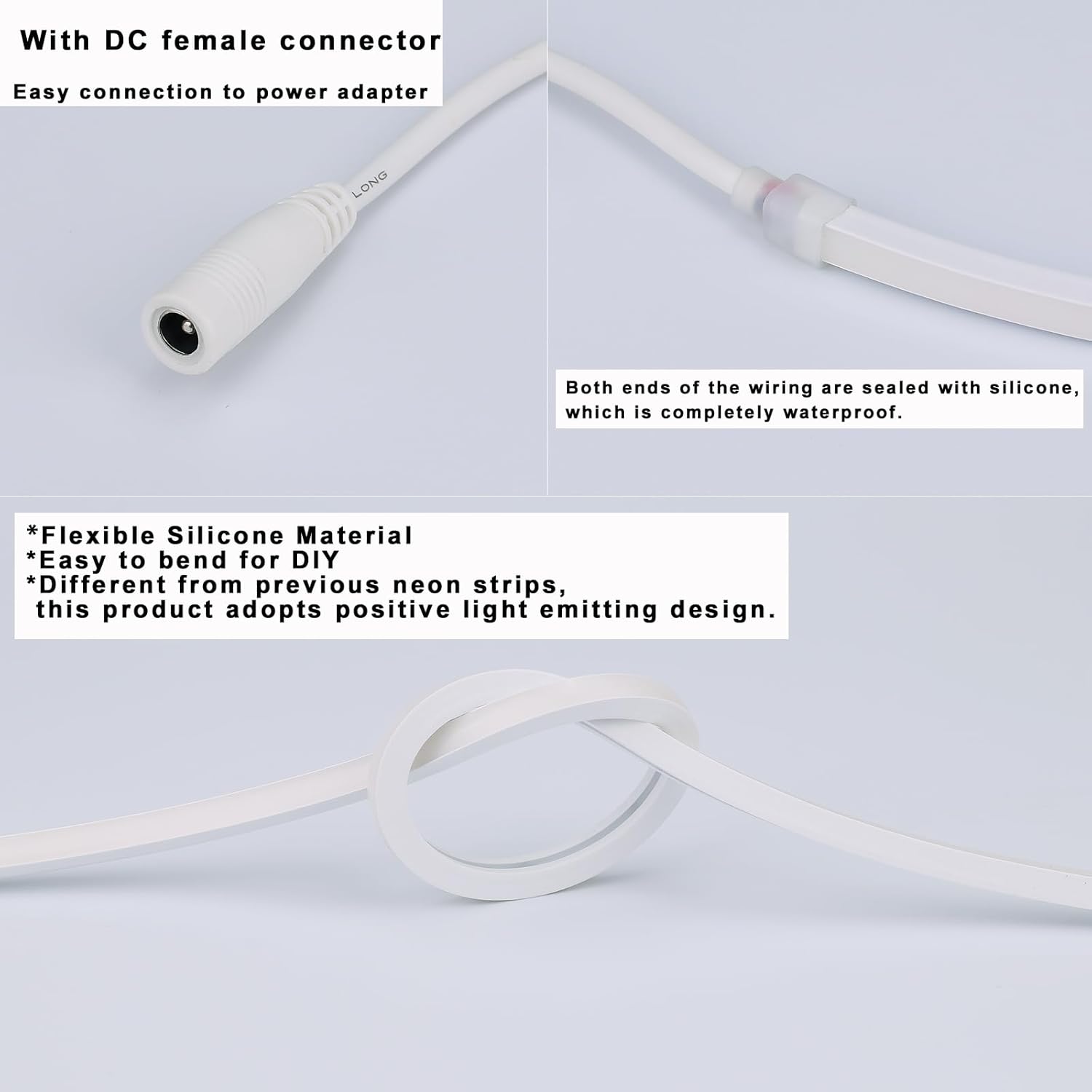 【Einfach zu installieren】Das Neonband kann alle 2,5 cm geschnitten werden, Sie können alle DIY Leuchtreklamen und kommerzielle Schilder machen. Die flexible Silikonhülle kann in jeder Weise gebogen werden, die Sie wollen.