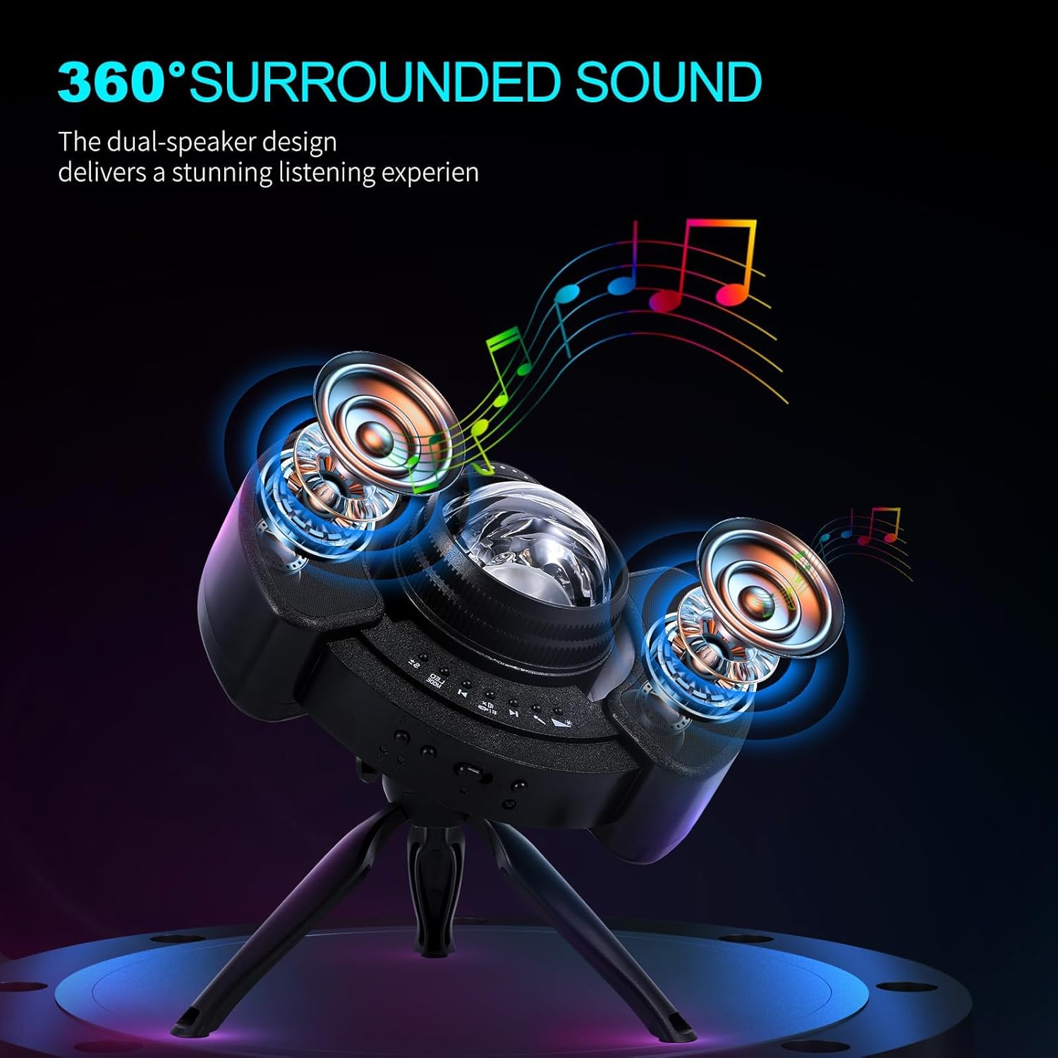 Hi-Fi-Stereo-Surround-Sound: Unser Nordlicht-Projektor verbessert nicht nur die Lichtwirkung, sondern verstärkt auch den Dual-Audio-Bereich für ein verbessertes 360°-Surround-Sound-Erlebnis. Genießen Sie herausragende Klangqualität und atemberaubende Bilder. Toller Rhythmus-Lichtmodus: Der integrierte Bluetooth-Lautsprecher synchronisiert das Galaxie-Nachtlicht mit Lichteffekten mit Musik. Der Galaxy-Lichtprojektor erzeugt noch anregendere Rhythmusmodi.