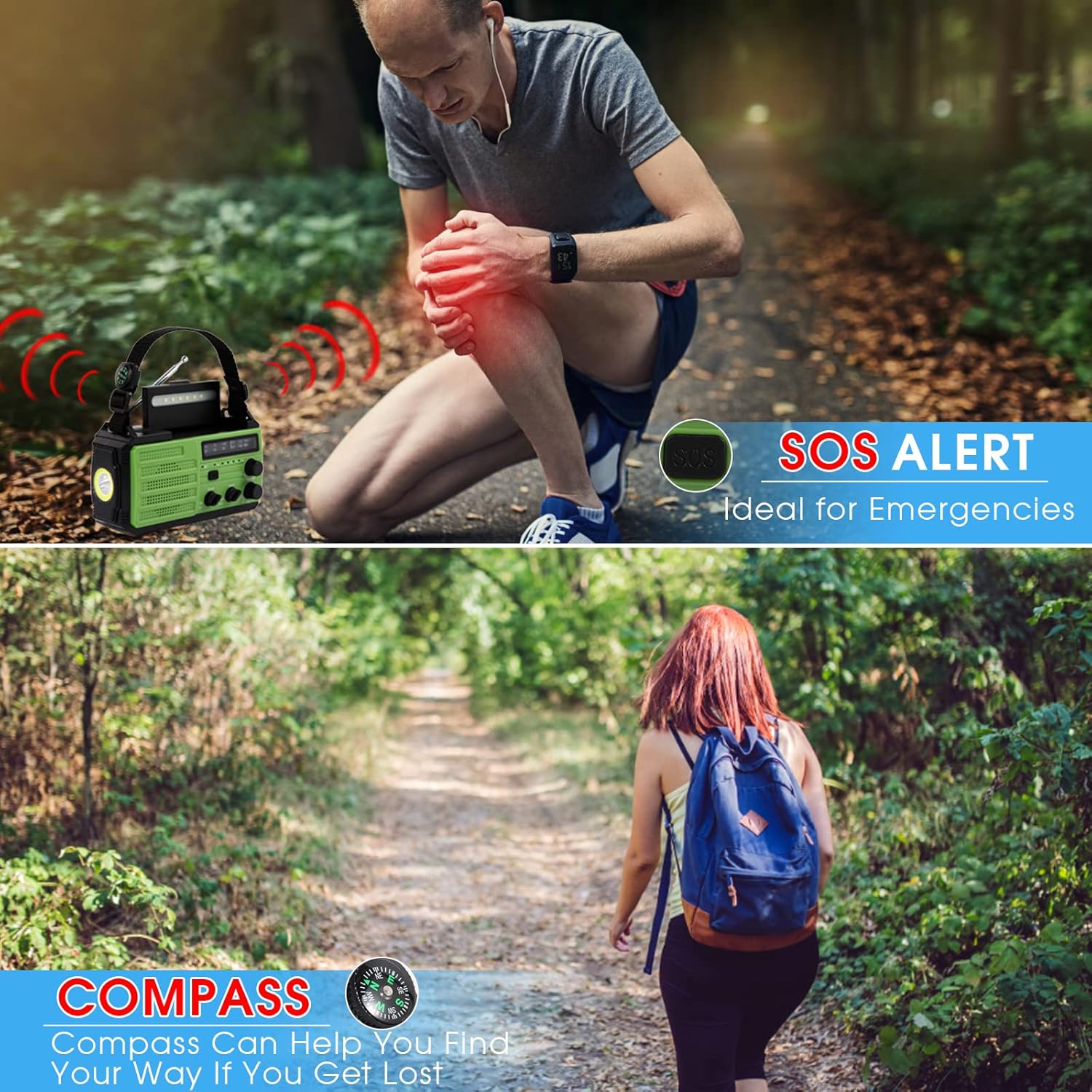????【SOS-ALARM MIT BLITZLICHT】: Das Solarradio ist mit einer SOS-Funktion ausgestattet. Wenn Sie sich im Freien verirren oder auf Gefahr stoßen, halten Sie die SOS-Taste drei Sekunden lang gedrückt, um einen lauten Alarmton und blinkende Lichter zu aktivieren, um die Aufmerksamkeit anderer auf sich zu ziehen. Halten Sie Ausschau nach Hilfe; und es wird auch mit einem Kompass geliefert, der Ihnen hilft, sich zu orientieren.