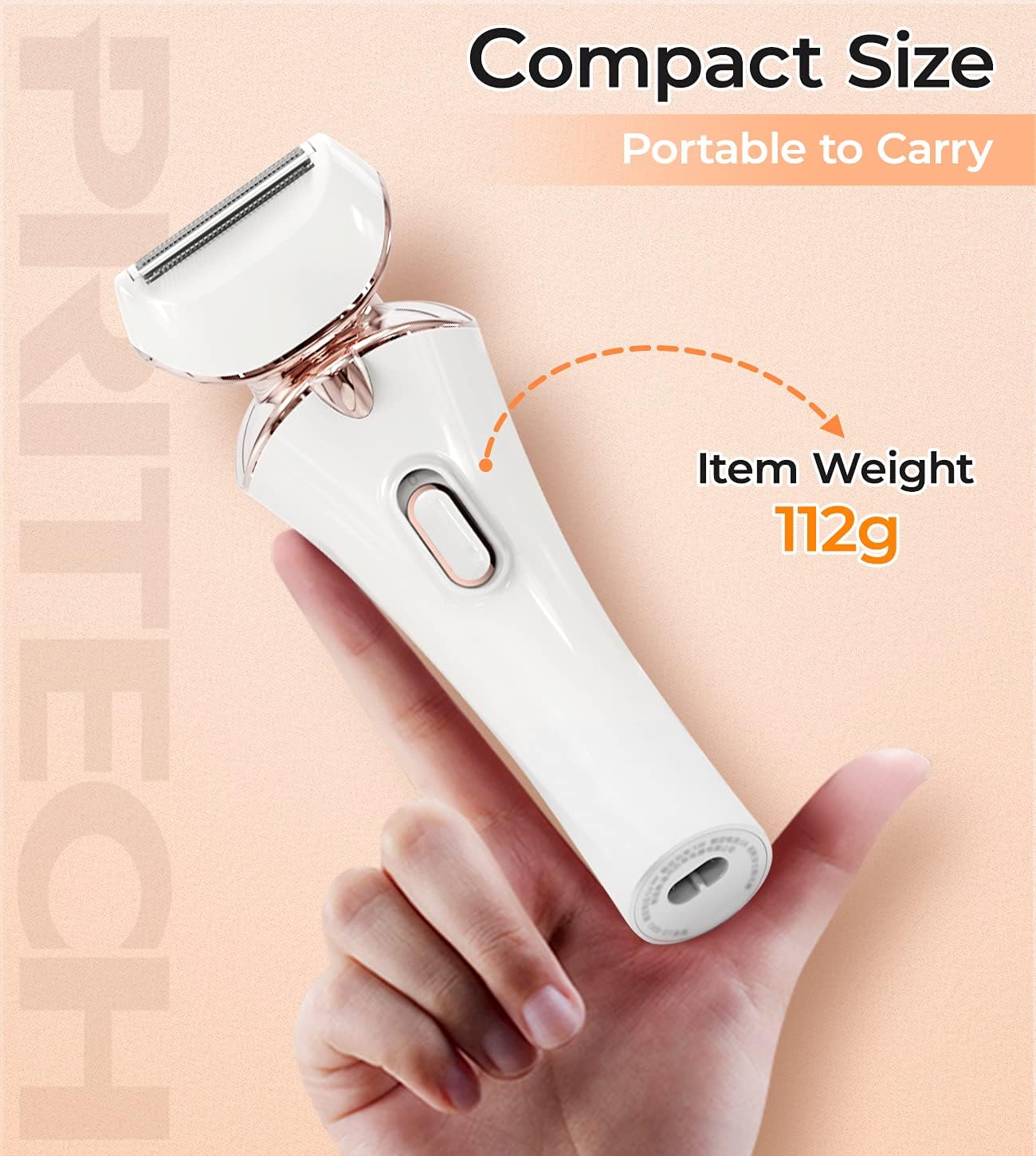 Pritech Elektrischer Rasierer für Frauen, Damenrasierer, Bikini-Trimmer, Körperhaarentfernung für Beine und Achselhöhlen, schmerzlos, kabellos, wiederaufladbar, nass und trocken, goldfarben und weiß