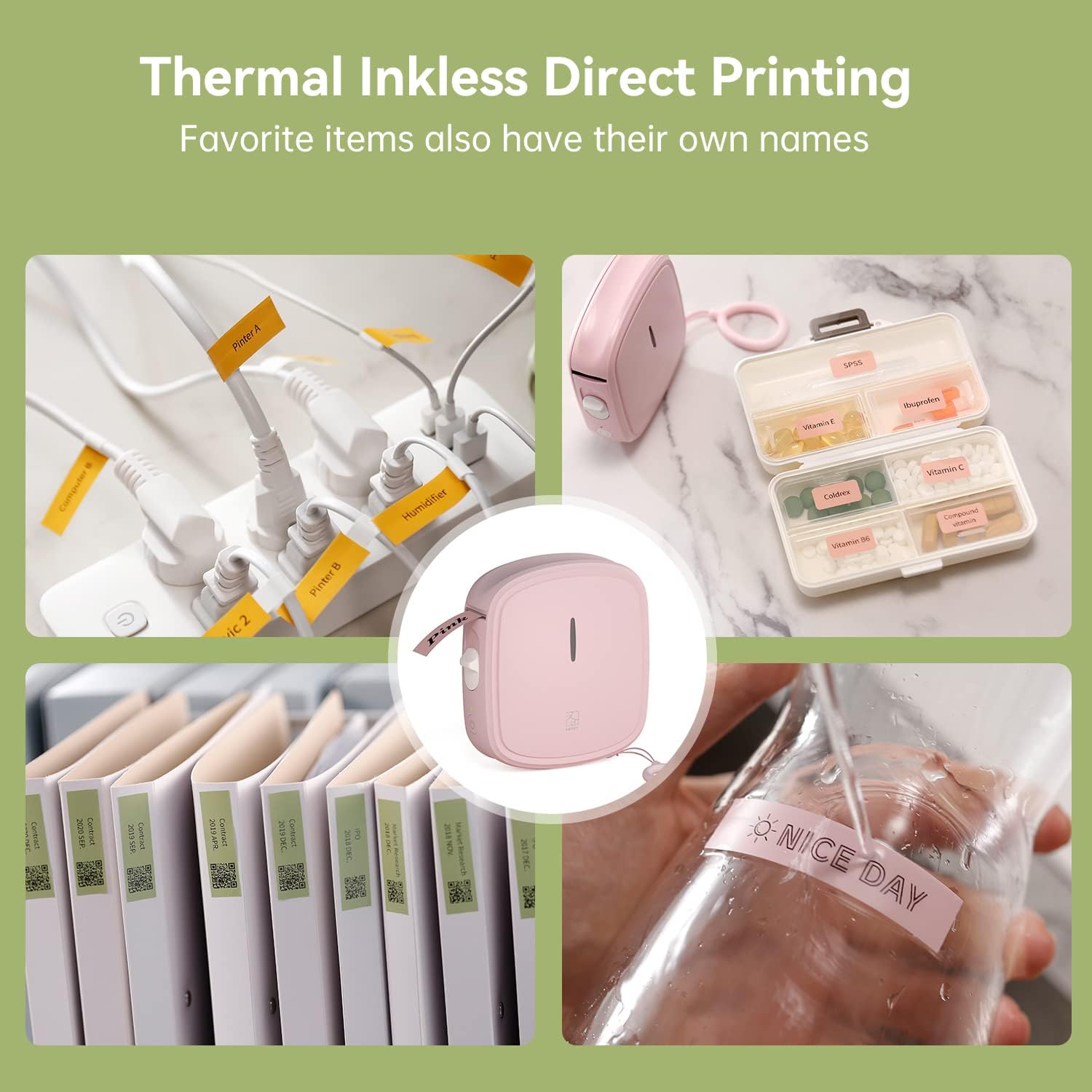 PRT Qutie Bluetooth Beschriftungsgerät Selbstklebend USB Wiederaufladbar Etikettendrucker - Tragbarer Mini Ettiketiergerät Labeldrucker für Zuhause, Büro, Datum, Rosa