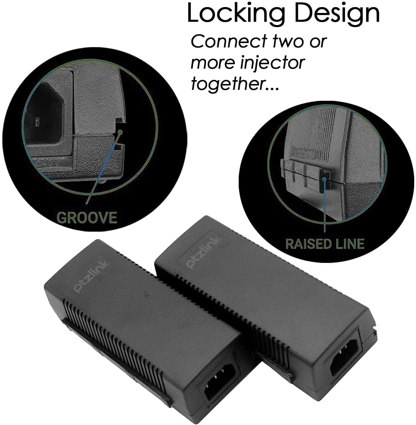 PTZlink 2er-Pack 30-W- und 60-W-PoE-Injektor, 48 V, 52 V, aktives Netzteil, Steckernetzteil, Gigabit-Ethernet-PoE+-Adapter, PoE++ Powerline, 1 GB, 10/100/1000 Mbit/s POE+ IEEE 802.3af/802.3at-konform, bis zu 100 Meter