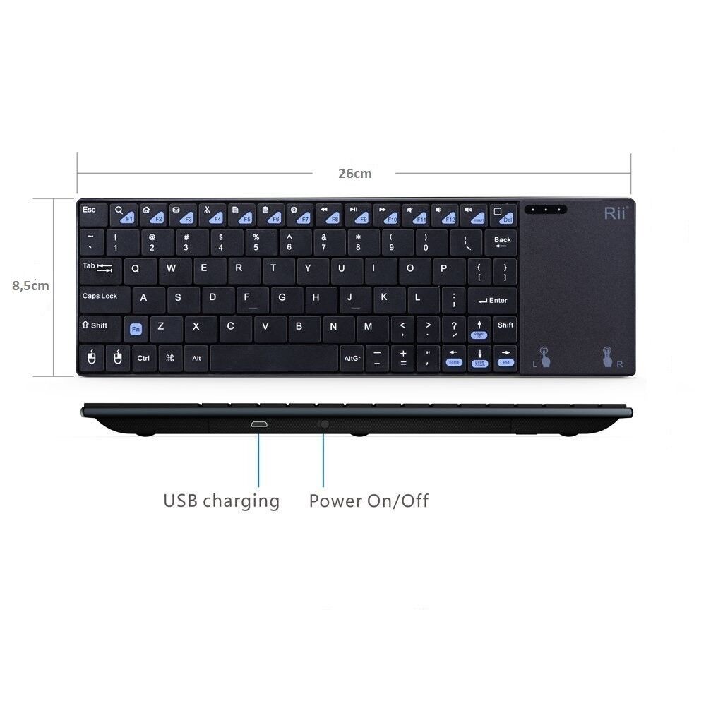 Rii K12+ Mini Funk Kabellos Tastatur mit Multi Touchpad Wireless Keyboard Deutsch