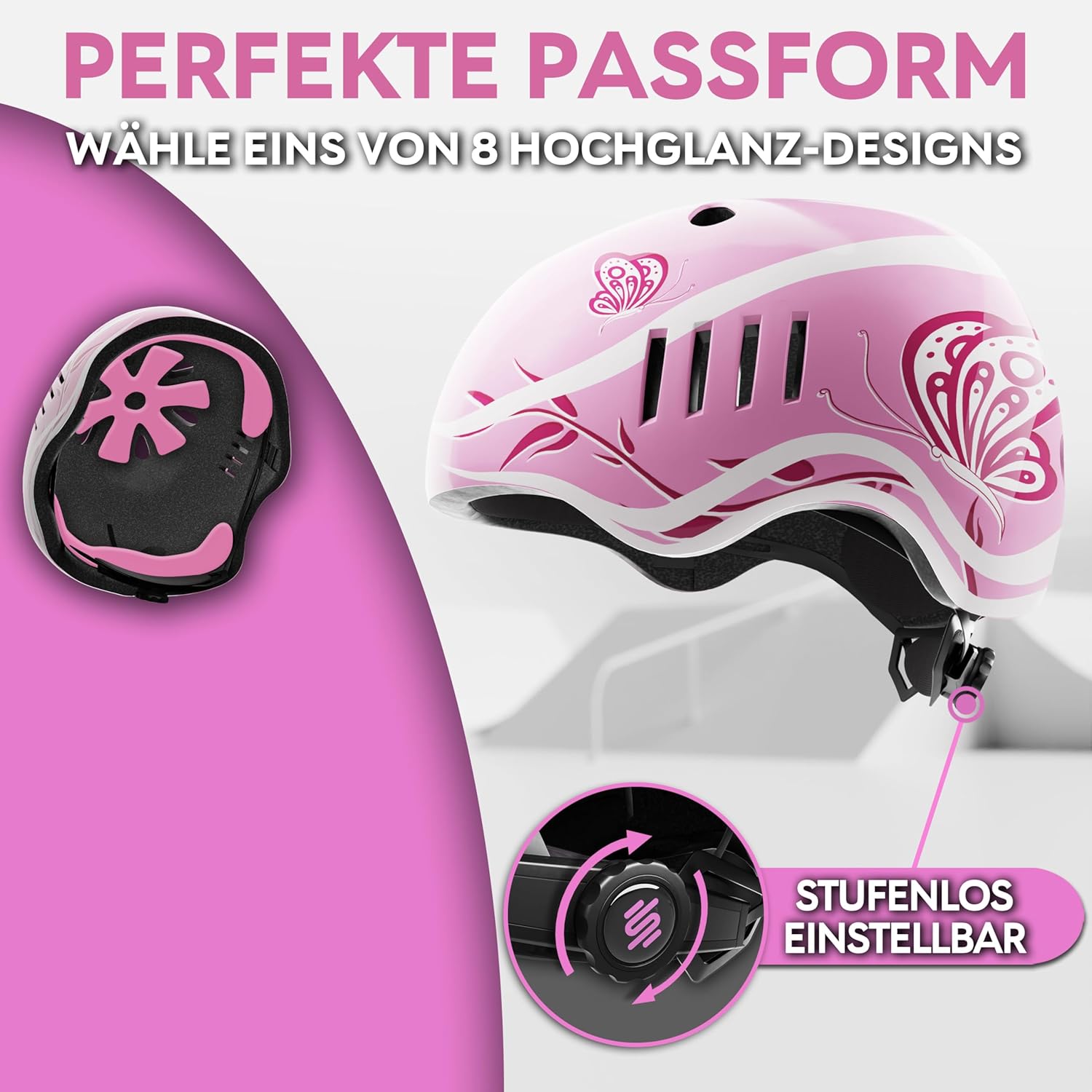 SKATEWIZ Fahrradhelm Skaterhelm für Kinder und Jugendliche – Extrem leicht – FIDLOCK Magnetschnalle – Größe S – 49–53 cm;Pink