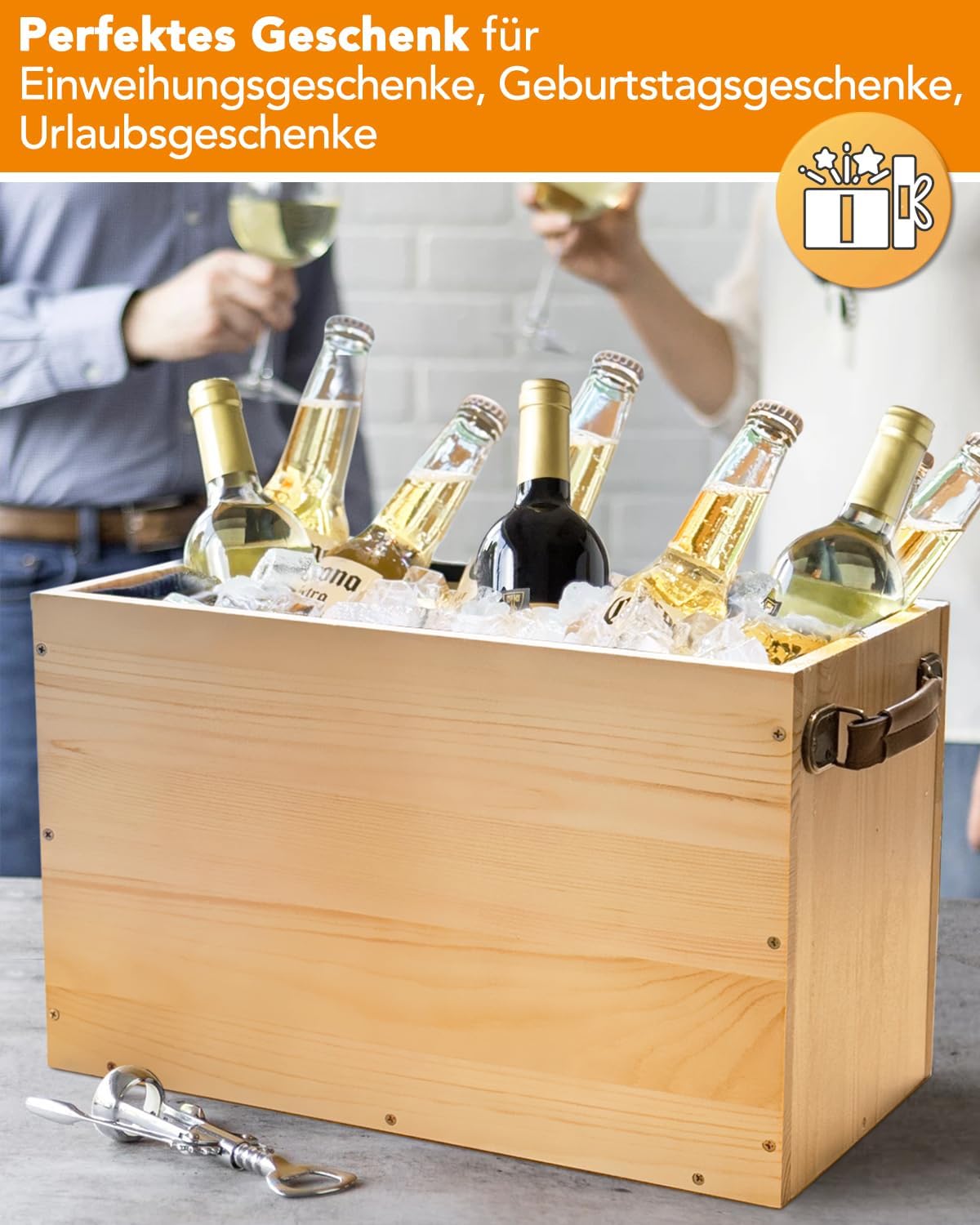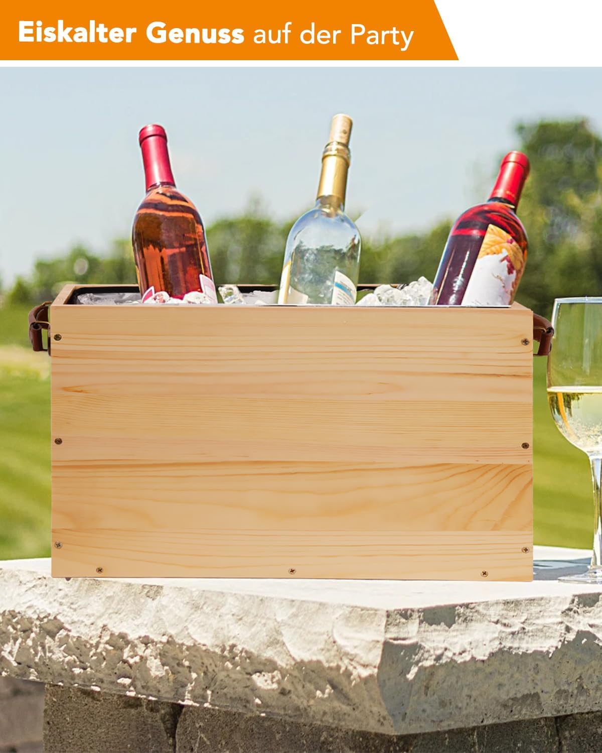 ????PRAKTISCHES & ANSPRECHENDES DESIGN: Der abnehmbare Eiskübel ist mit Vintage-Ledergriffen versehen und hat eine Gesamtgröße von 40 (Länge) * 20 (Breite) * 25 (Höhe) cm mit einem Fassungsvermögen von 20 Litern. Es bietet Platz für 4 Flaschen Wein mit 1,5 Litern oder 8 Bierflaschen und ist nicht nur praktisch, sondern auch optisch ansprechend.