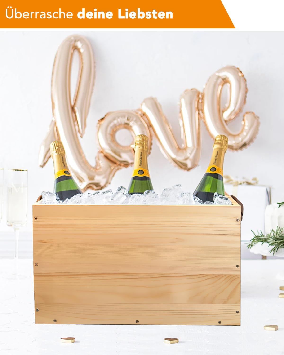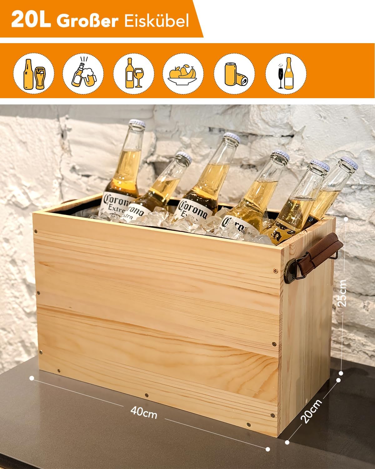 Southagte 20L Sektkühler Holz, XXL Getränkekühler mit Leder Griff, Großer Eiskübel Wasserdicht,